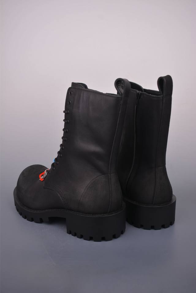 仿古做旧工艺效果工装系带靴