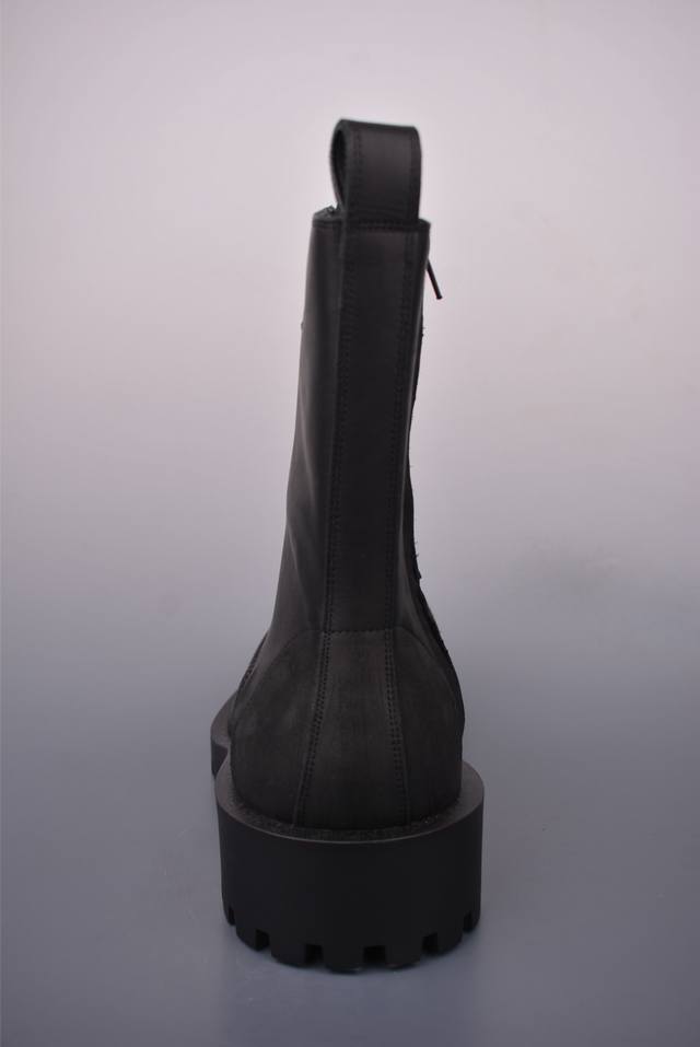 圆头裸靴侧拉链厚男士底靴