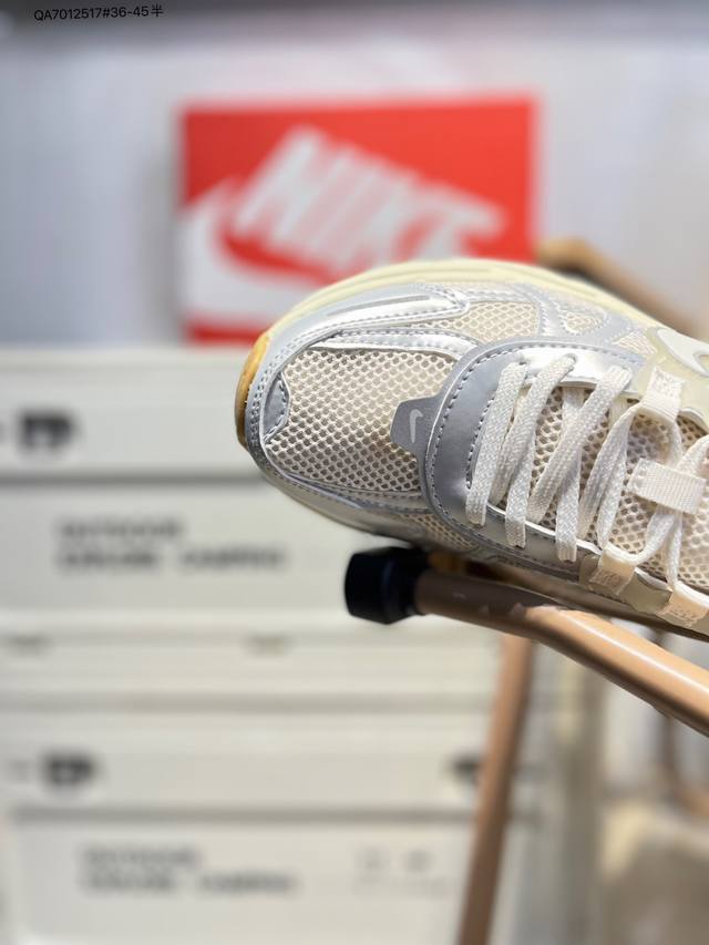 Nk V2K Runtekk 减震防滑低帮 复古老爹鞋跑步鞋 鞋款被命名为 Runtekk 设计上借鉴了 2000 年的跑鞋风格 配色上以金属银为主调 简练又有复古运动气质 材质上使用大面积网眼、皮革、Tpu 组成 支撑和透气性肯定不错 中底处由 Cushlon 泡绵打造 保证在压马路时可以提供优秀脚感 并通过一手做旧氧化效果突出复古感 中底造型很容易让大家联想到巴黎世家3Xl 增高效果同样不能忽视Fd0736 Qa7012517#36-45半 DDD