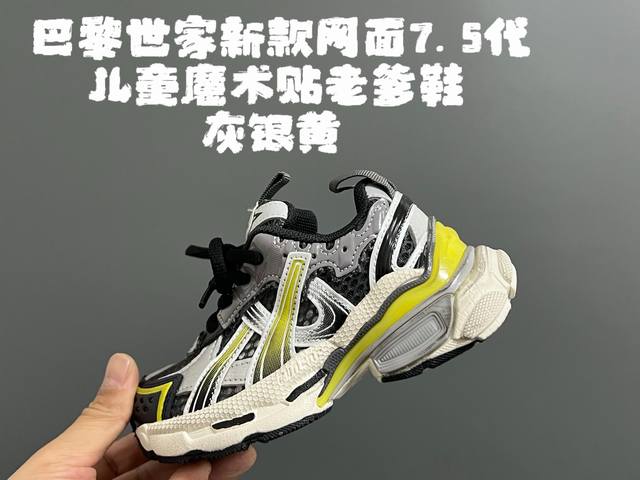 巴家新款网面7.5代儿童魔术贴老爹鞋 Size:26-37码 经典巴黎世家7.5老爹款式 网面设计,透气又舒适 魔术贴设计,穿脱超方便...