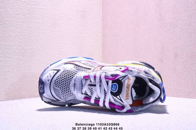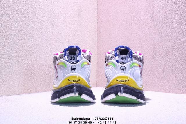 / 巴黎世家 Balenciaga 巴黎世家Runner老爹鞋舒适运动慢跑鞋 不含皮运动鞋,网布材质,磨损效果,鞋头边缘印有尺码,背面浮印尺码,外侧印有跑者徽标,鞋