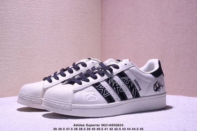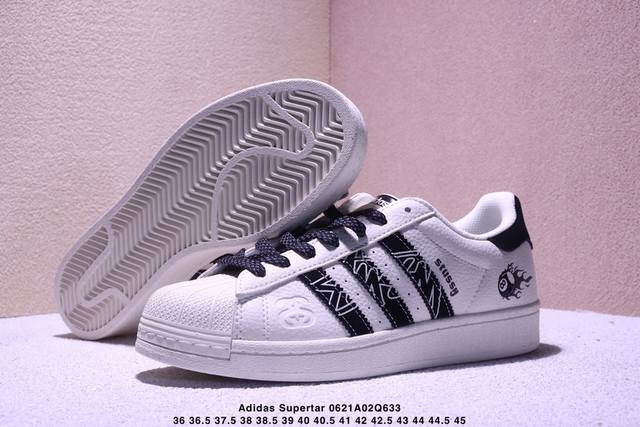 纯原 Clot X Ad Originals Supertar#贝壳头巴黎世家联名限定 贴合柔软皮料蓝白配色 ,这双鞋的整体设计思路和风格可以说很Clot。鞋款整体选用了易穿搭的白色作为主色调,而加厚的锯齿形外底以及标志性的贝壳头无疑把鞋款的独特属性进一步展现出来。