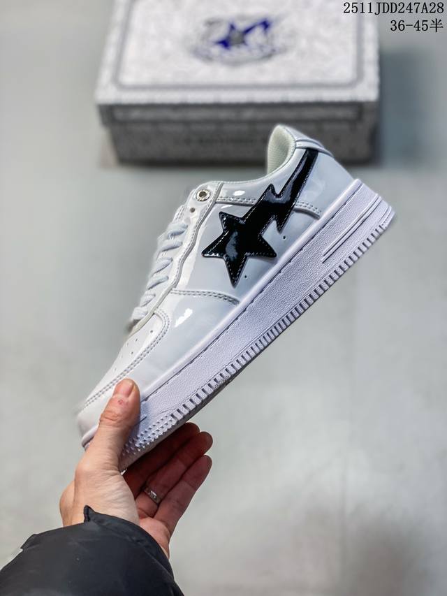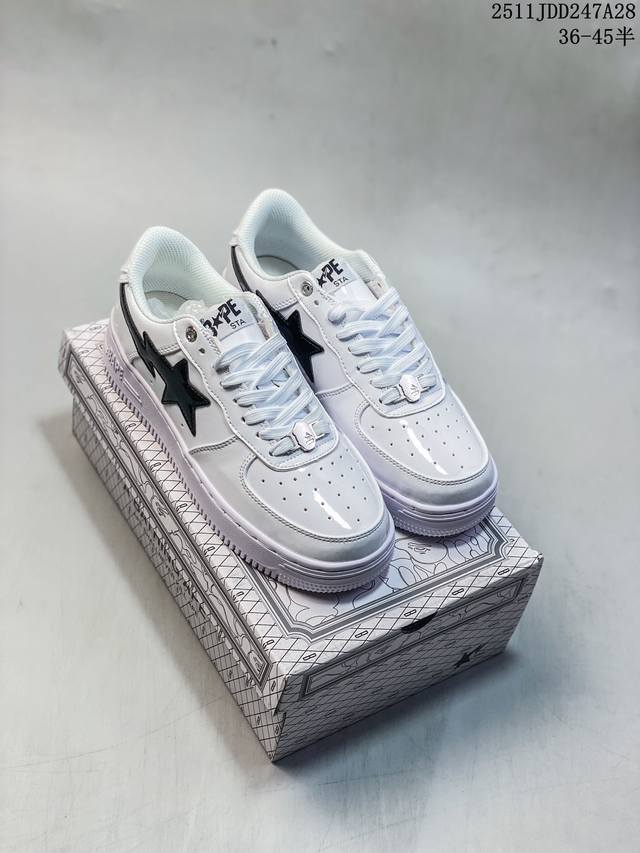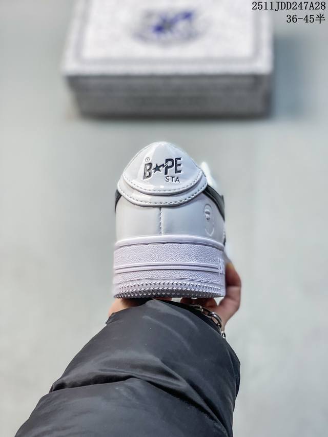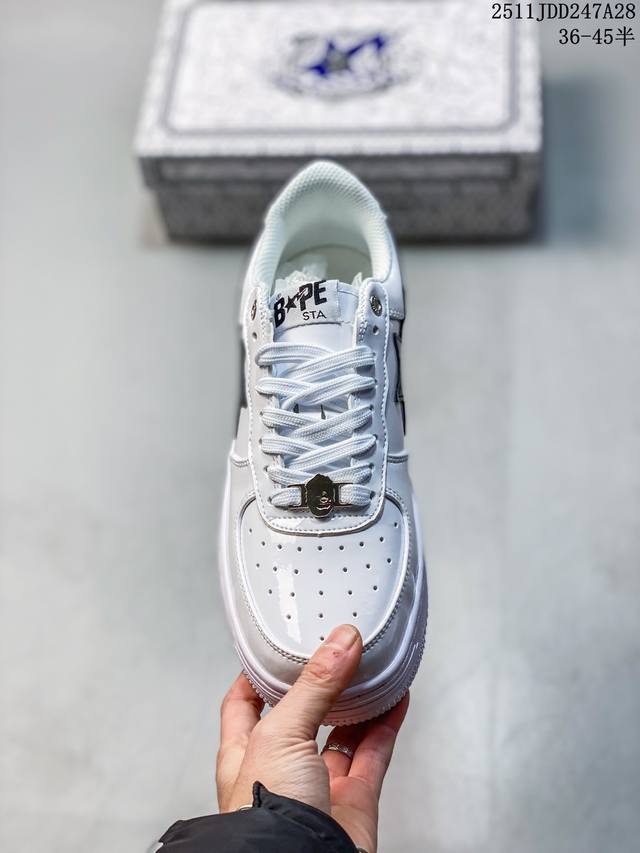 Bape Sta To Low 猿人头经典漆皮低帮运动休闲板鞋 全套原纸板楦头开发 确保原汁原味 市场最完美低趴版型 鞋头弧度高度鞋身弧度 外贸平台指定订单 独家私模磨具冲刀加持 原厂特供皮料光泽色卡零偏差 内里均采用市场最好的超软原厂填充棉 原数据进口机台高频印压Logo 最高Qc检验标准 控制溢胶瑕疵 深浅定位均保持Zp一致 中底嵌入Ortholite缓震材质 全套原包装 包含猿人Logo DDD 11Jdd247A28 DDD