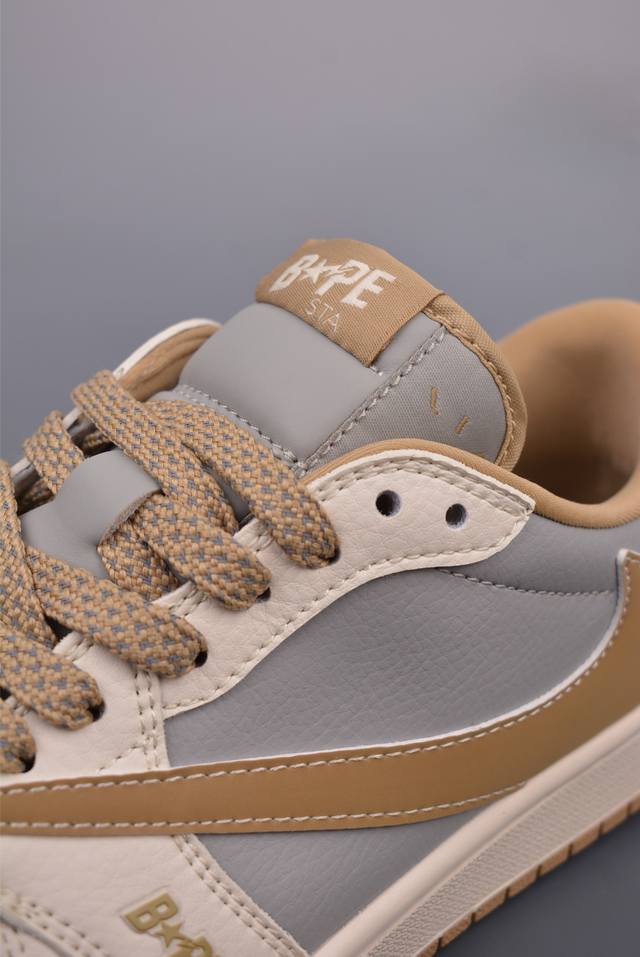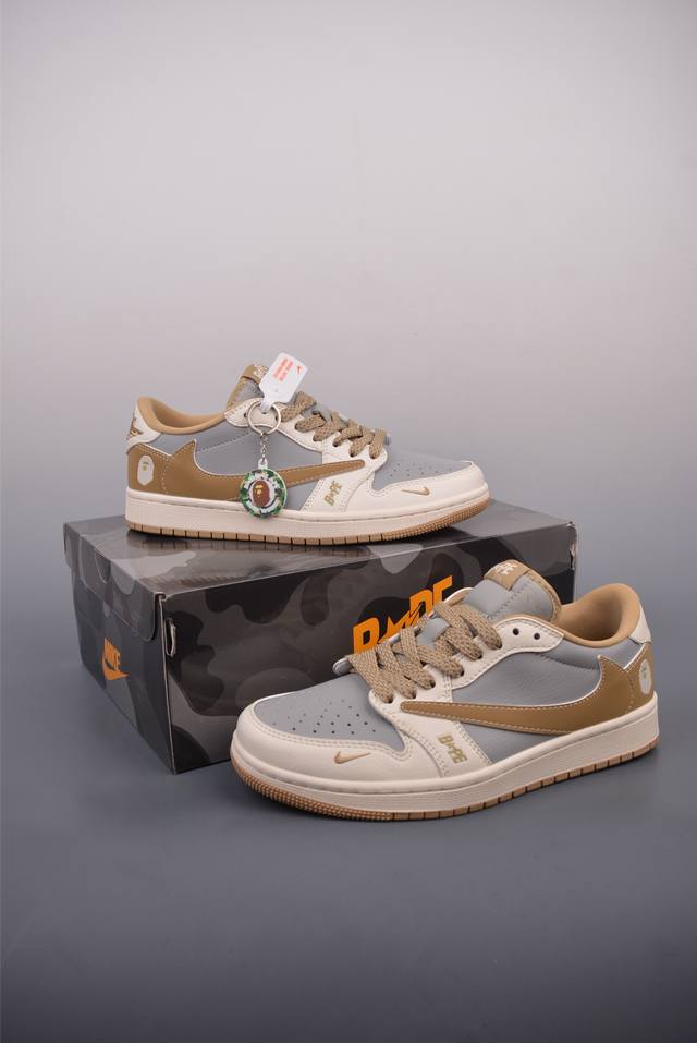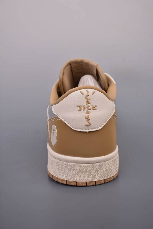 性价比原盒出货 全新的三方联名低帮倒钩鞋面延续了黑脚趾设计,整双鞋以全荔枝皮打造,腰身搭配白色「倒勾」,再点缀上Travis Scott 标志性的Logo,后跟处以藤原浩最拿手的蓝色为主色调,完善极具Fragment Design的白蓝黑设计风格,左右脚分别以Travis Scott鬼脸和乔丹飞翼加以修饰,彰显出三方联名的奢华格调。