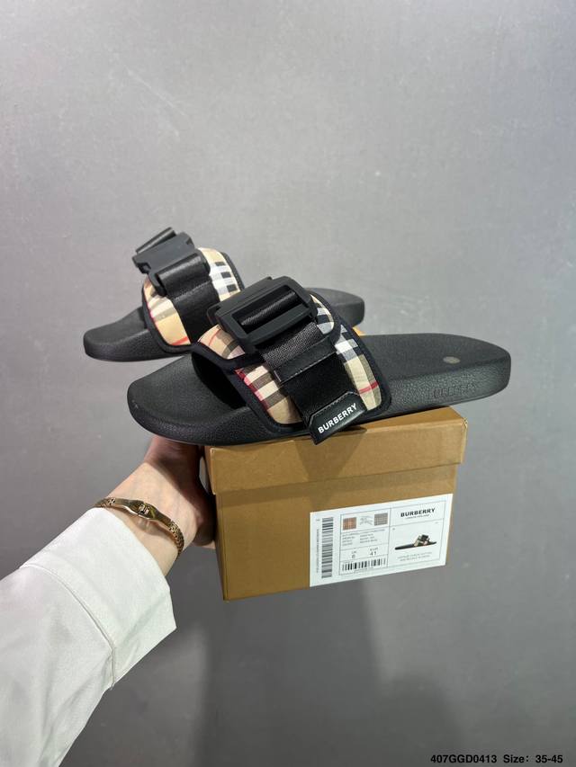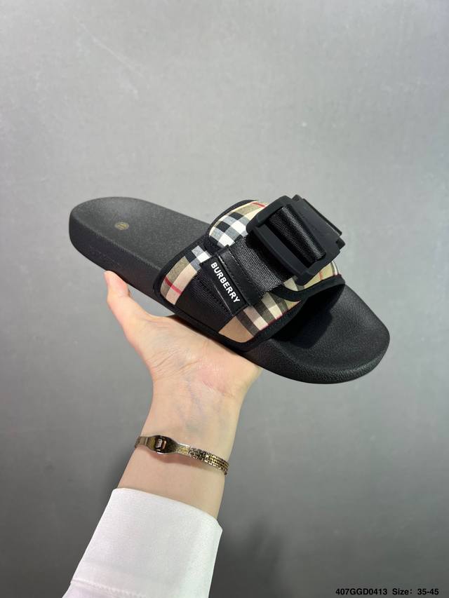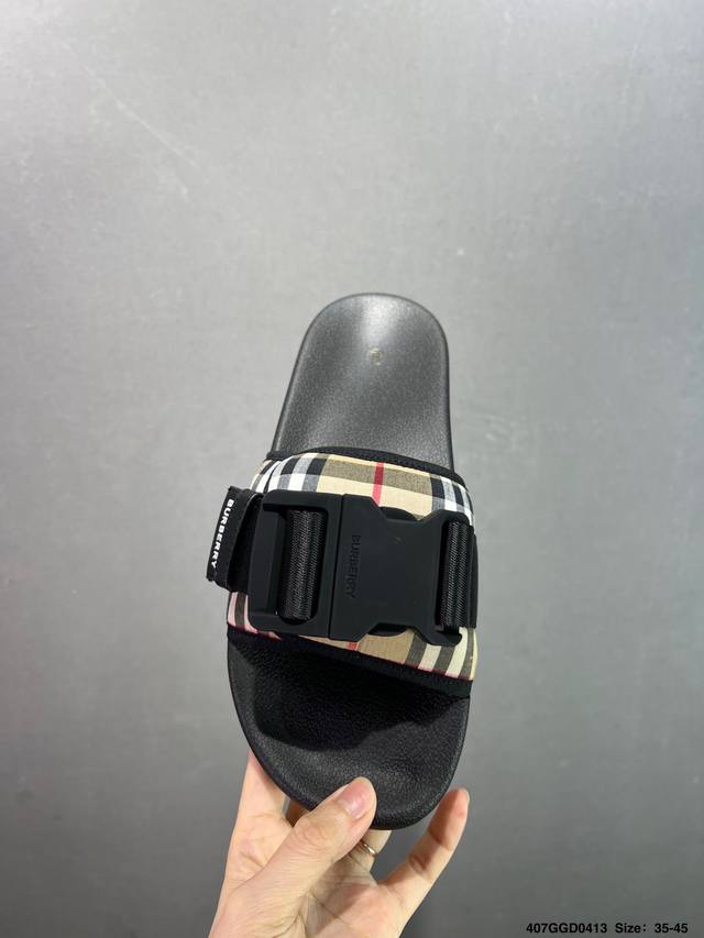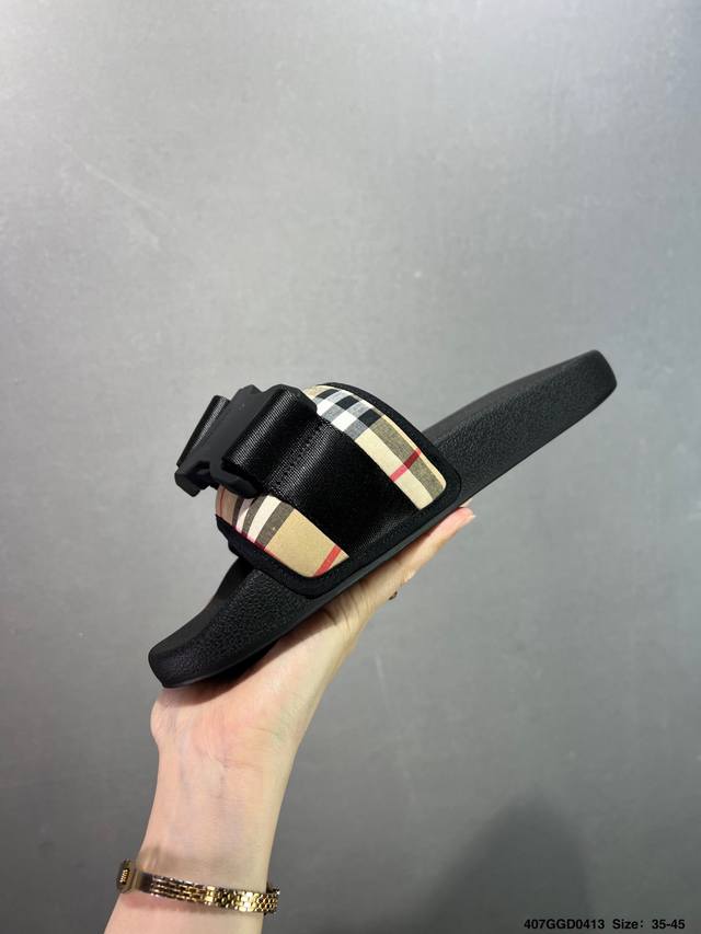 公司级Burberry博柏利 Vintage 格纹搭扣束带一字拖鞋 尺码:35-45 Id:407Ggd0413
