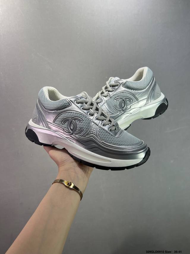 香奶奶24Ss金角银角大王金属系列 法国奢侈品品牌 香奈儿chanel 2024 徽标 运动鞋 克鲁斯轻便复古老爹鞋 未来金属风...