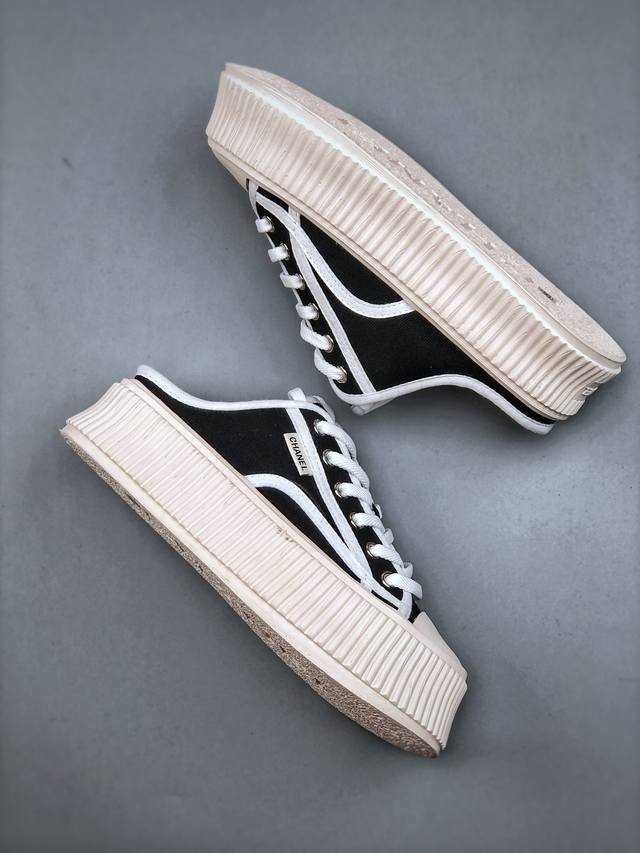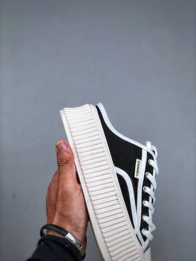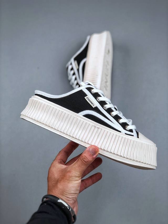 / Chanel 香奈儿 2025 新款限定 香奈儿厚底松糕半托 小红书爆款 香奈儿最潮半托 明星同款 原版开模 代购版本 进口定制帆布 原版私膜轻型真皮大底 厚底