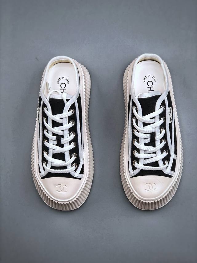 Chanel 香奈儿 2025 新款限定 香奈儿厚底松糕半托 小红书爆款 香奈儿最潮半托 明星同款 原版开模 代购版本 进口定制帆布 原版私膜轻型真皮大底 厚底