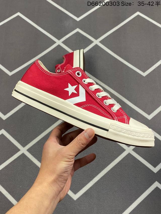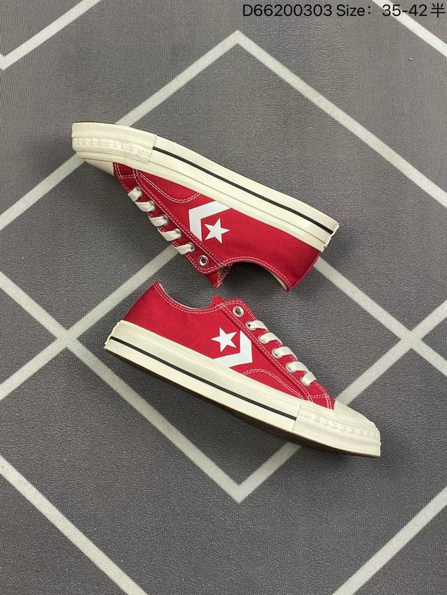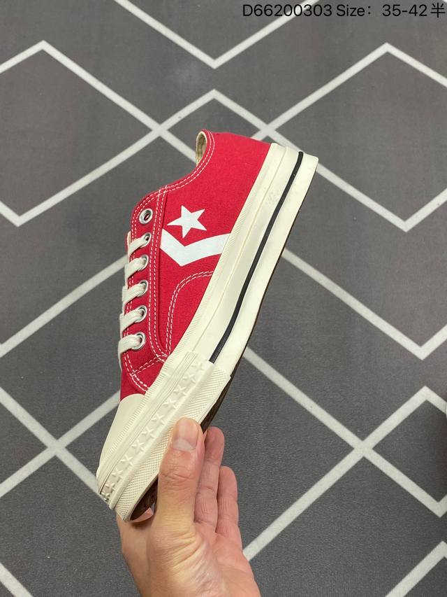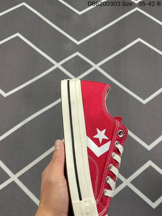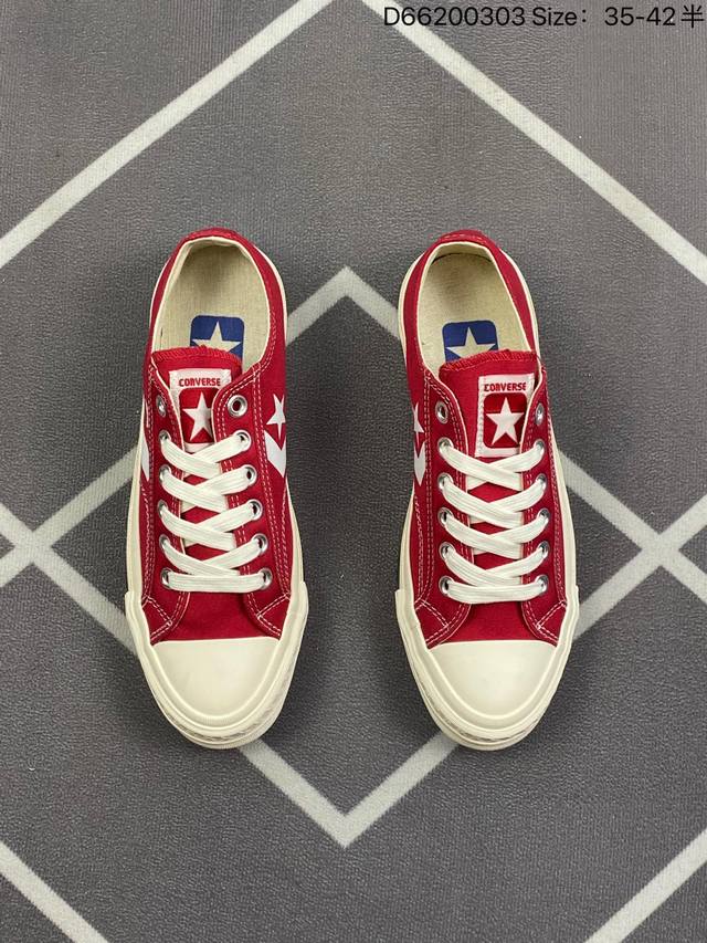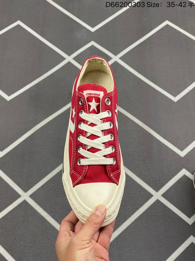 匡威女鞋真标硫化工艺#双层围条夹布防开胶工艺#内嵌Eva缓震鞋底装置旗下人气支线系列,匡威Converse Cx-Pro Sk Cv Ox 日本星箭系列帆布硫化低帮板鞋“帆布红白星箭印花”