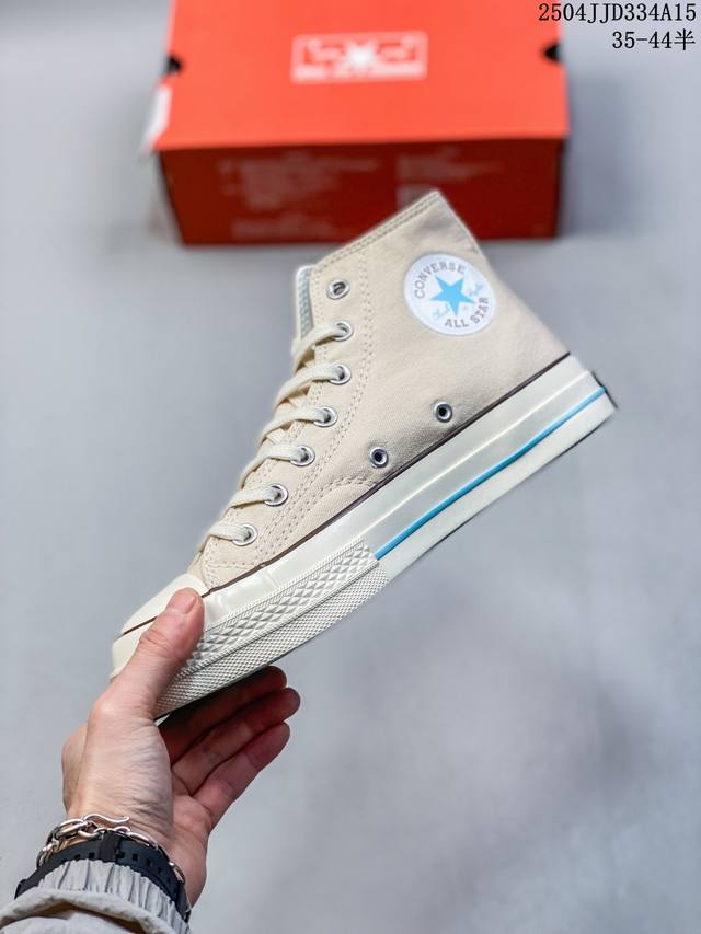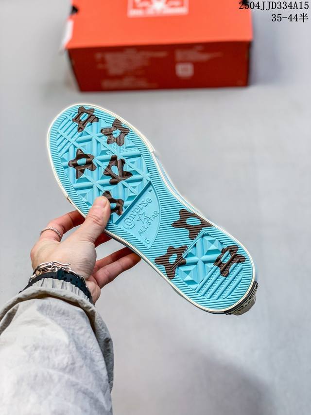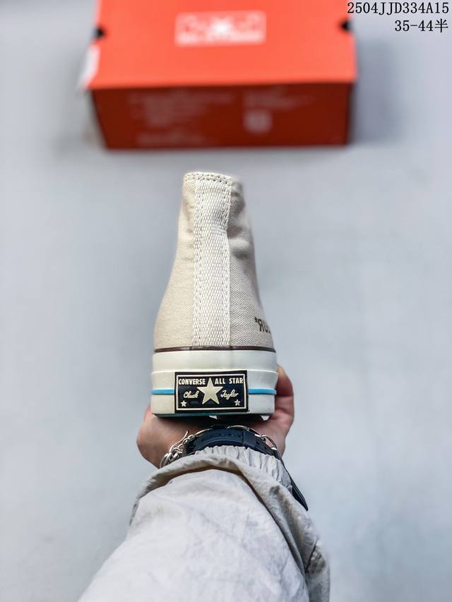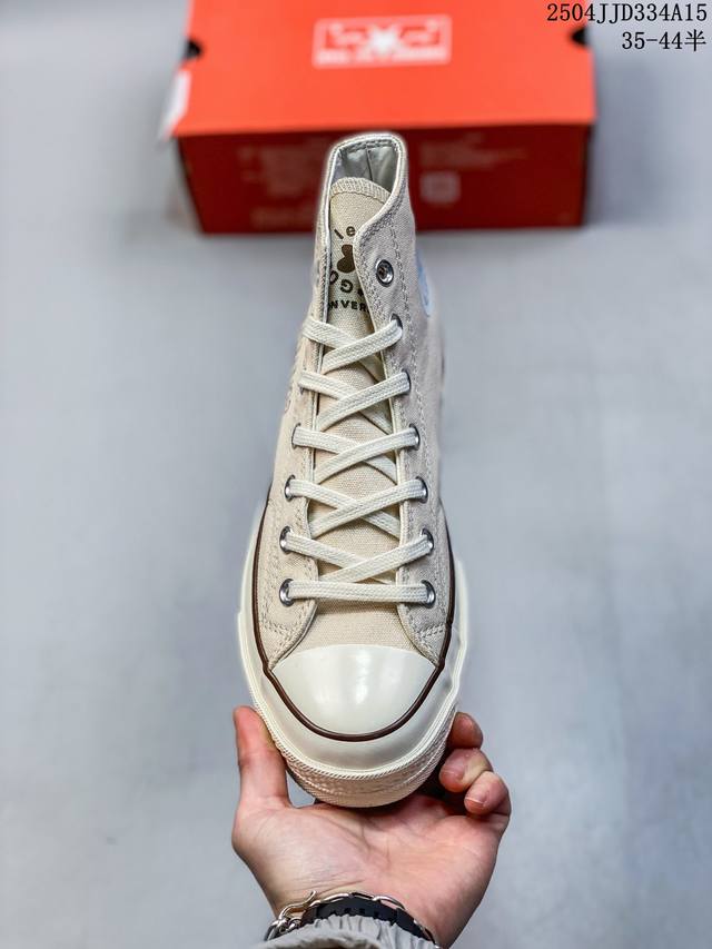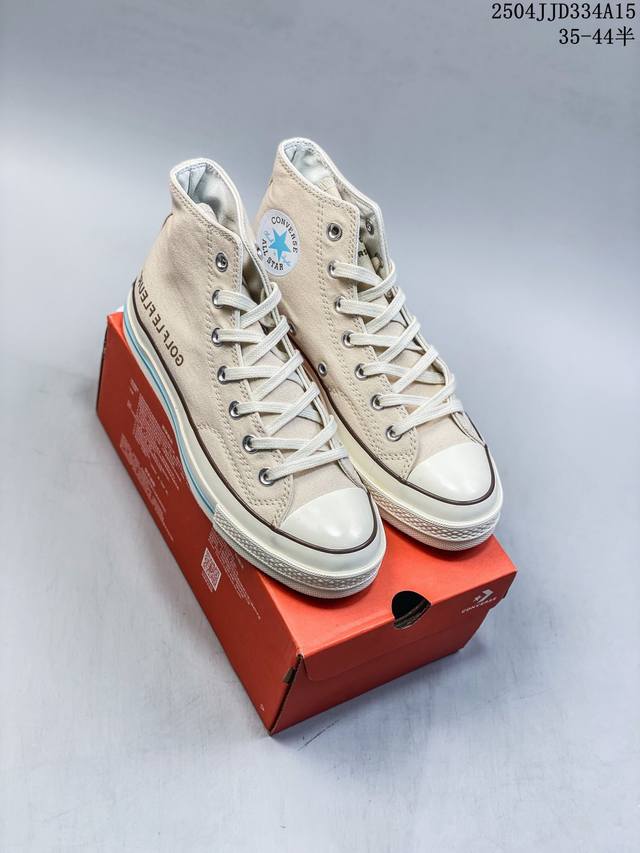 匡威 高品质硫化工艺,市面最为正确聚氨酯硅蓝pu中底携手创意鬼才品牌再度联名Golf Le Fleur X Converse Chuck 70 Hi'burlap'高帮系带百搭硫化板鞋“米白浅月褐”