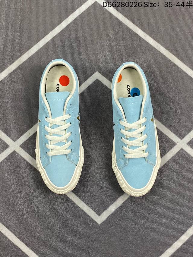 春夏新款只为你″星 动鸳鸯鞋 Converse Chuck 1970S 五星缝线白粉蓝鸳鸯 五星图案 风格清新 鞋身星星图案一边白色帆布粉围条...