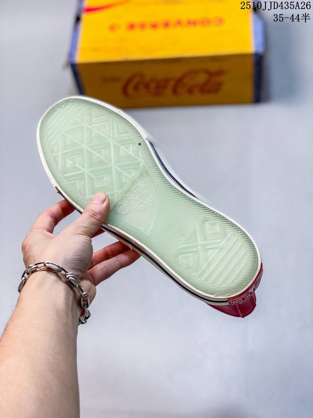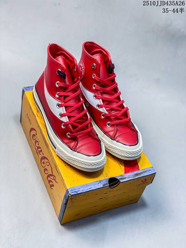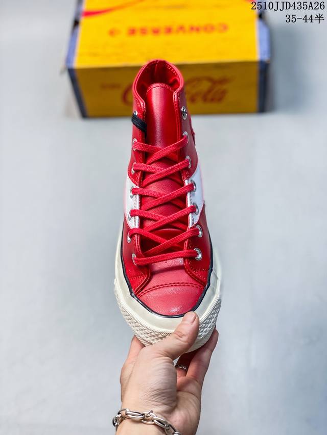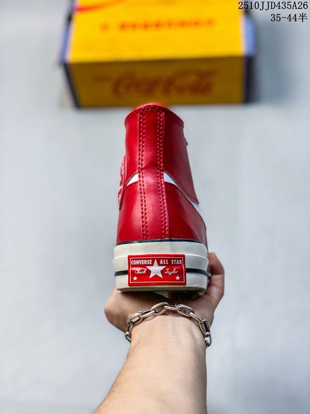 / 年末联名 重磅来袭! 匡威Converse 携手 可口可乐Coca-Cola,推出联名系列 将可乐元素融入标志性设计。优质红色皮革鞋面,搭配清爽白色条纹,再现可