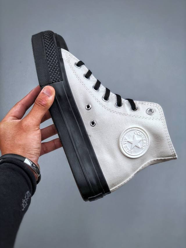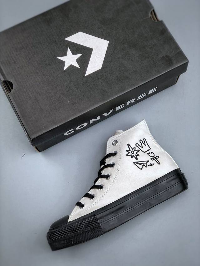 / 王源演唱会同款 匡威厚底增高白黑帆布鞋! Converse All Star Lift经典厚底增高米白黑底高帮皇冠纸飞机印花帆布鞋 王源亲自参与设计的匡威王源联