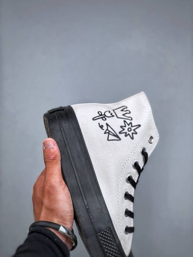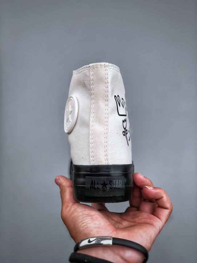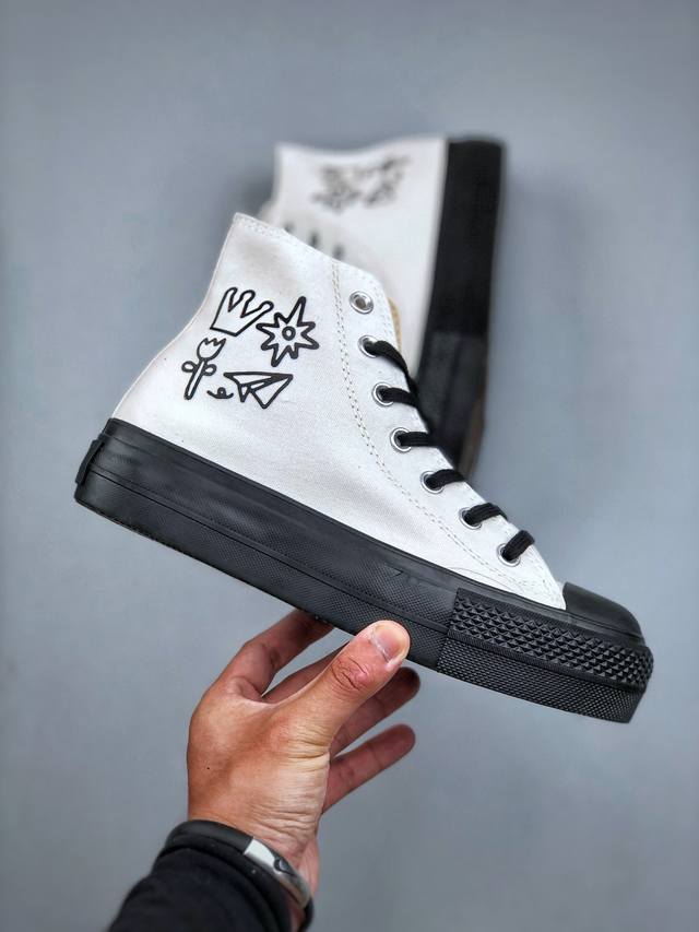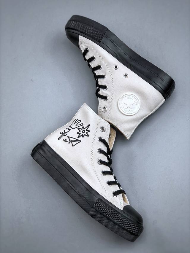 王源演唱会同款 匡威厚底增高白黑帆布鞋! Converse All Star Lift经典厚底增高米白黑底高帮皇冠纸飞机印花帆布鞋 王源亲自参与设计的匡威王源联