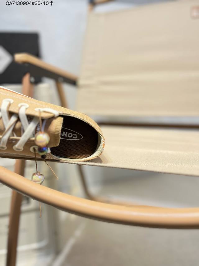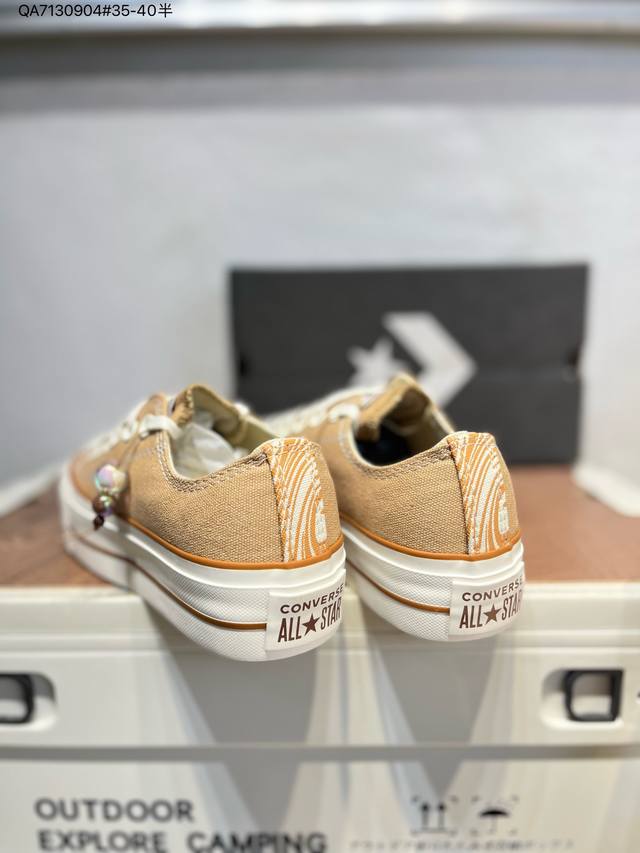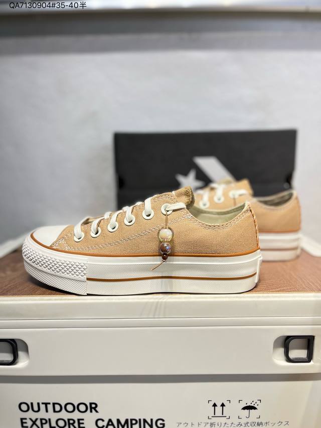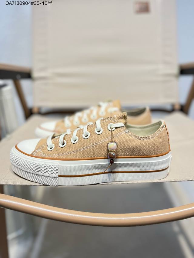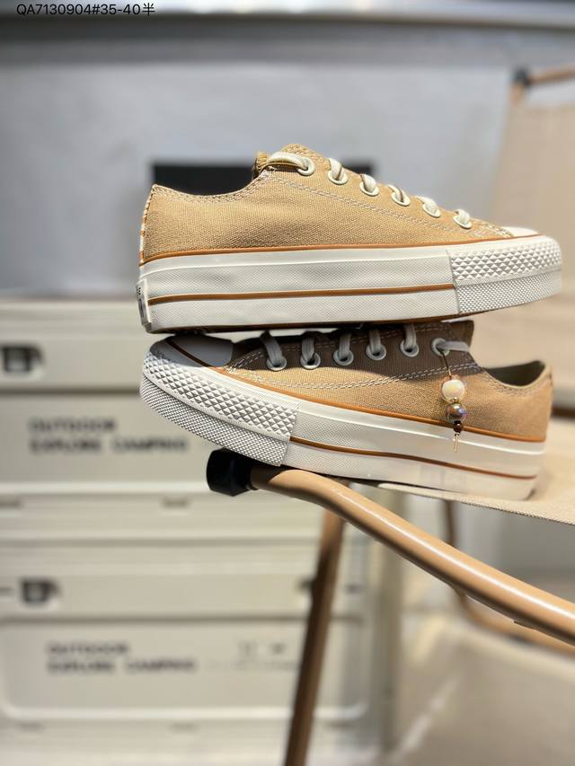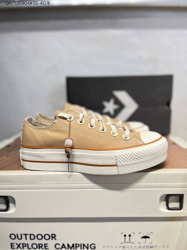 真标硫化工艺#原装铝楦数据开发版型#采用韩国进口环保绿吸附性中底布材质#聚氨酯硅蓝Pu缓震鞋垫官方新色,匡威Converse Chuck Taylor All Star Lift Ox Khaki Charm 明星经典中性低帮松糕厚底休闲运动硫化鞋“帆布咖啡豆奶茶色”A11619C Qa7130904#35-40半