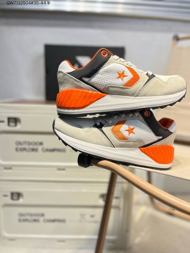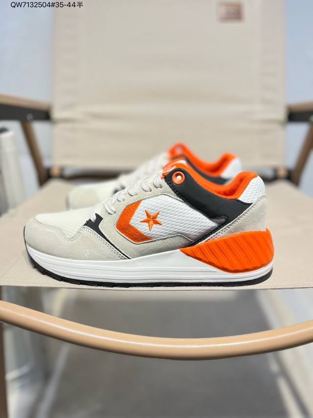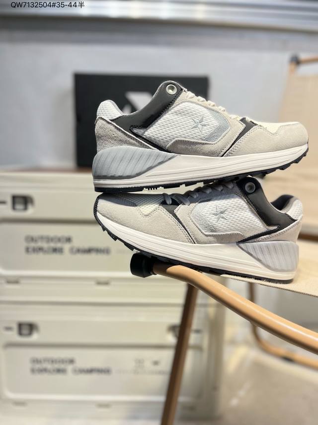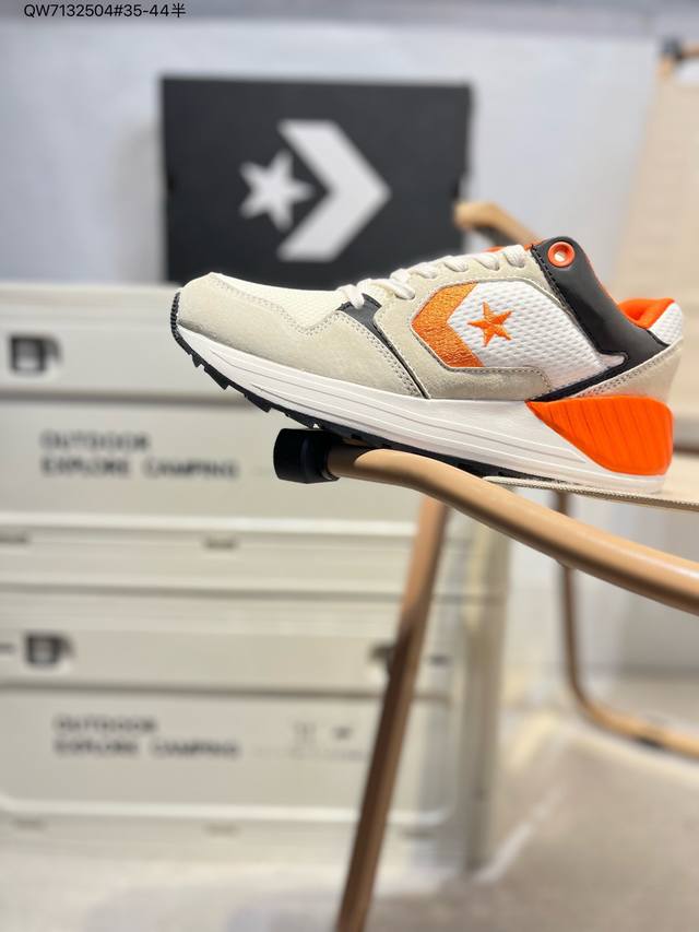 原楦原纸版开发版型#采用牛津布组合猪巴革饰片鞋面材质#中底搭载Md缓震物料组合防滑耐磨橡胶外底致敬经典,复古跑鞋家族焕新登场!匡威Converse Omega Trainer 欧米伽系列低帮训练风复古休闲运动慢跑鞋Qw7132504#35-44半