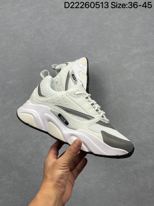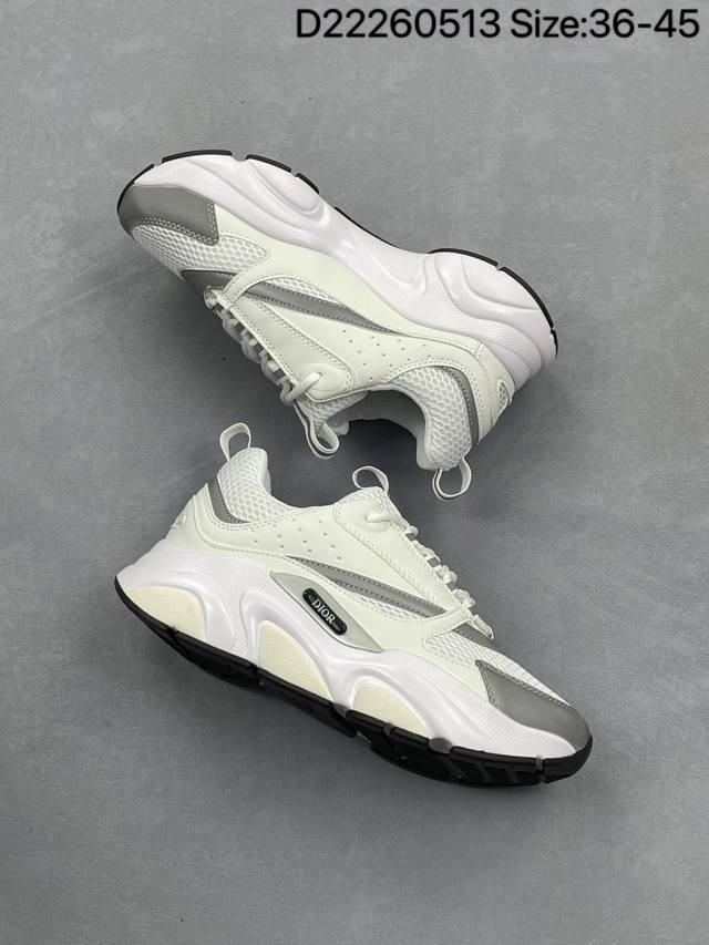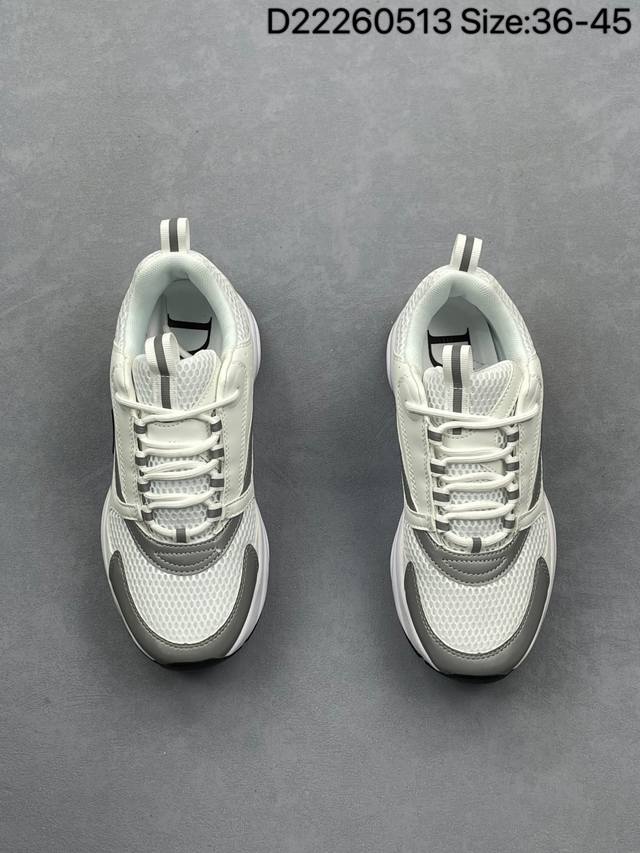法国时尚品牌,迪奥 桀傲Dior Homme B24 Reflective Mesh Leather Sneakers复古休闲穿搭慢跑鞋,白色色纯棉鞋带白色科技面料衬里鞋头“Cd”标志定染小牛皮Tpu压花饰片原装鞋带卡扣后跟藤格纹细节和 Christian Dior 与“Dior”标志黑白色组合胶质鞋底纯棉鞋带 黑色科技面料衬里