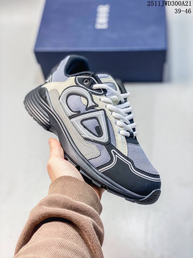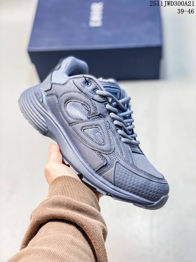 法国高奢时装品牌-迪奥 桀傲 Dior Homme B22 Trainer Sneaker系列复古厚底老爹风休闲运动慢跑鞋 原楦原纸版数据开发,采用光滑牛皮革组