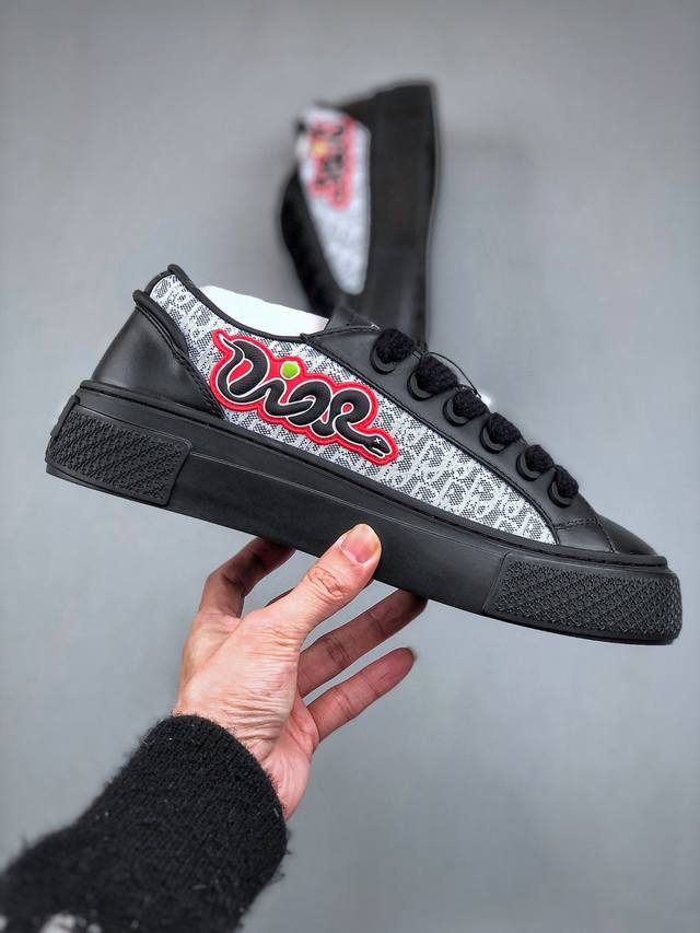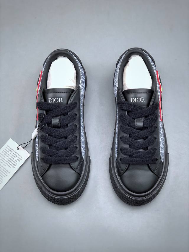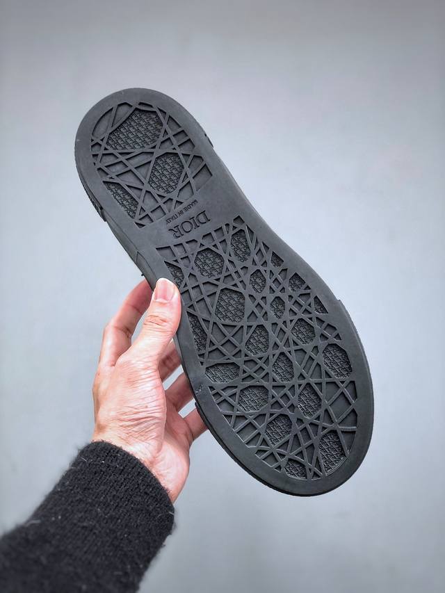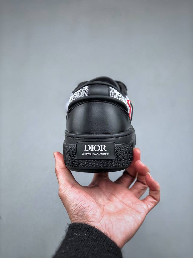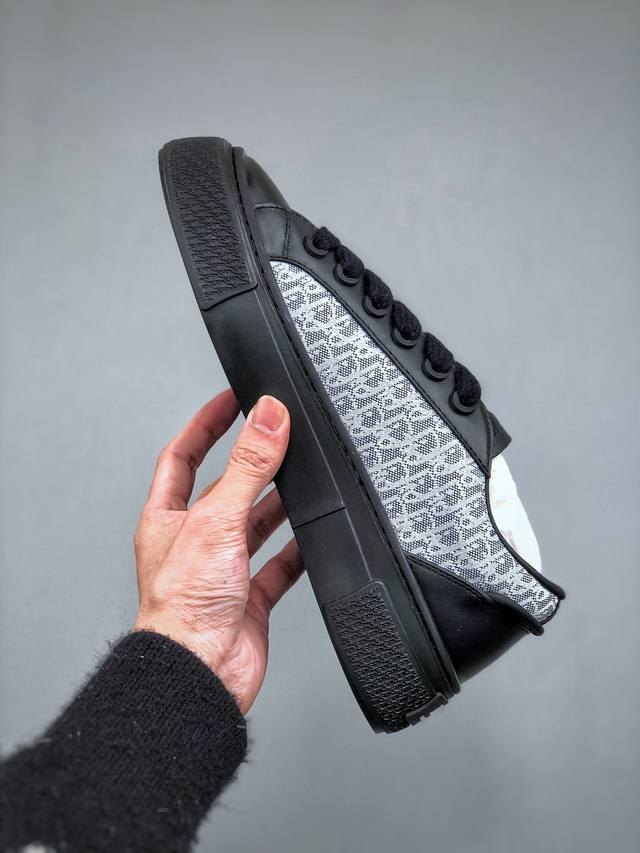 2025款秋季新品 鞋面双层面革 后脚跟处分离设计鞋边沿条 重新诠释经典的网球鞋 时尚的廓形突显厚实感 饰以 Oblique 印花 搭配绒面革镶片 别具一格的加垫鞋舌点缀以 Dior 压花标志 搭配海军蓝色马海毛宽鞋带和哑光同色调饰面黄铜孔眼。白色 Dior Oblique 图案橡胶鞋底 后侧饰以对比鲜明的 Dior 30 Aven