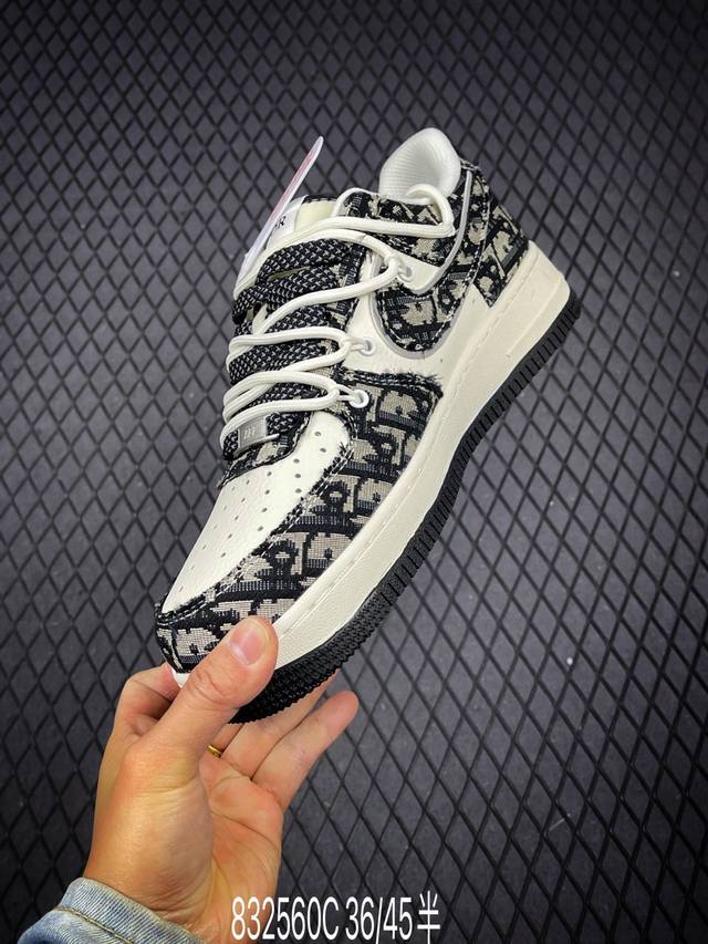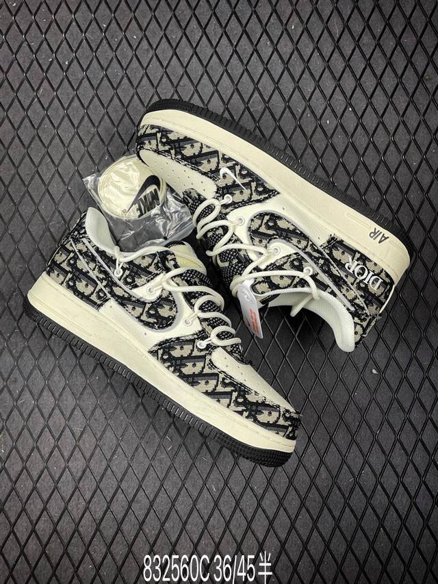 Nk Air Force 1'07 Low 迪奥联名 黑花纹抽绳 空军一号低帮休闲板鞋 Sj1198-106