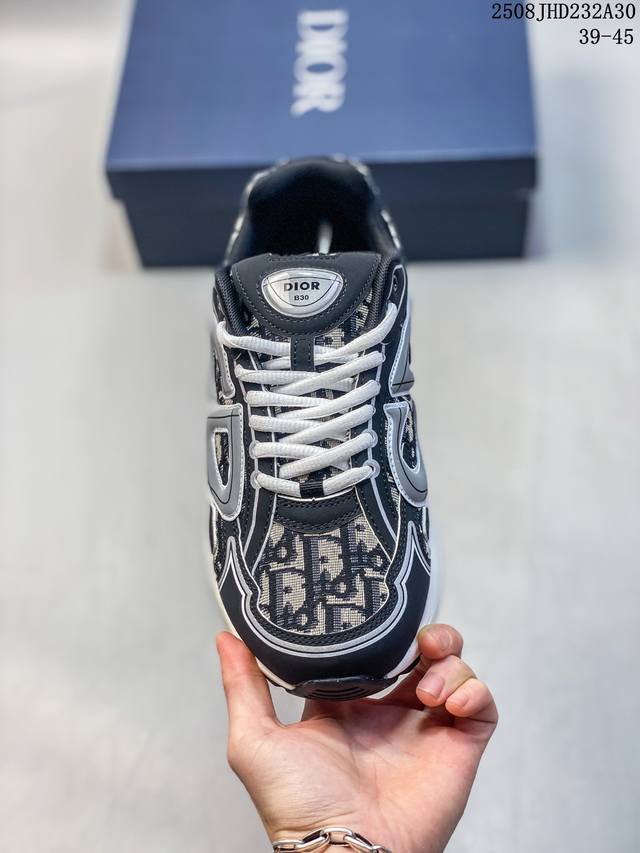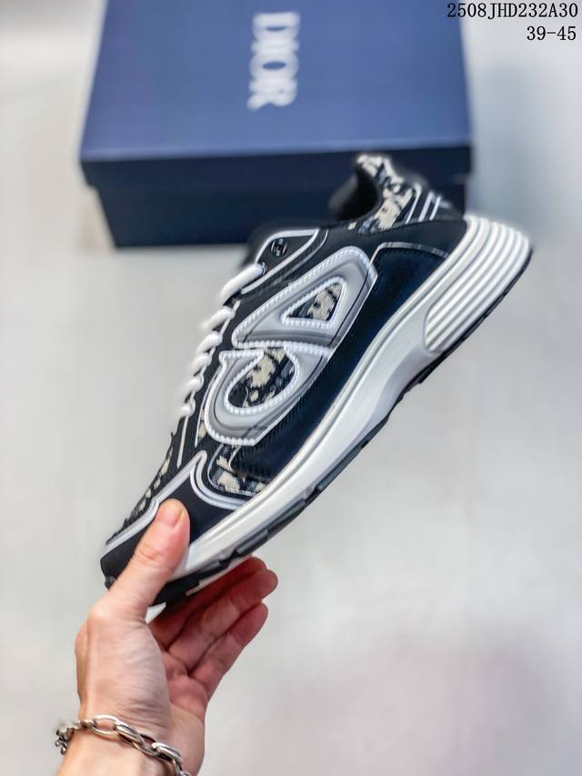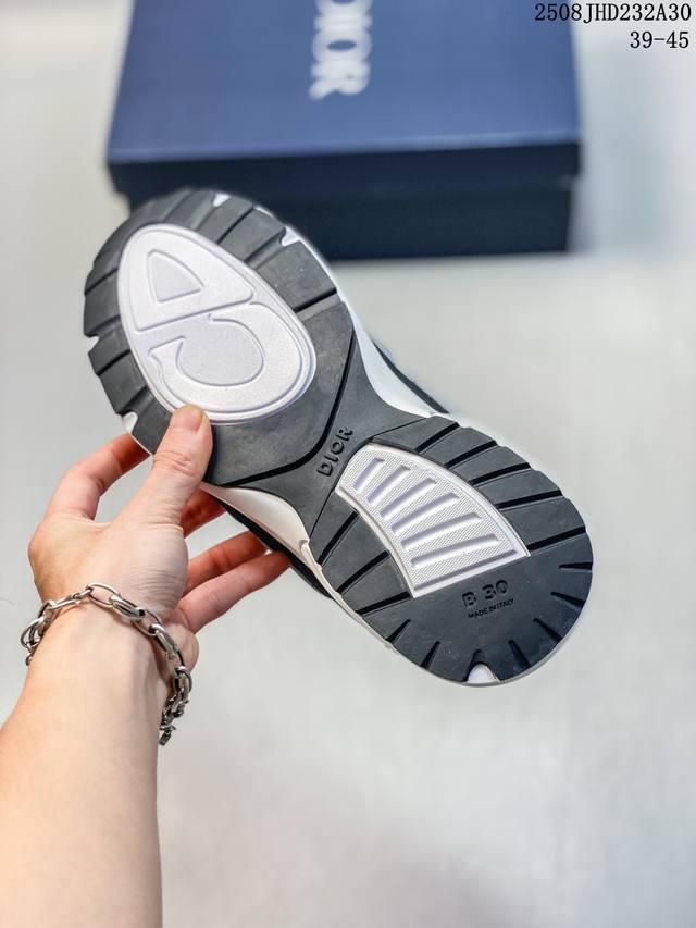 Dior迪奥B30网眼织物厚底系带休闲低帮运动鞋男女同款老爹鞋 这款 B30 Countdown 低帮运动鞋已成为 Dior 别具一格的经典新品,时尚而富有运动风范。采用煤灰色网眼织物精心制作,搭配黑色、蓝色和迪奥灰科技面料,饰以反光 Cd30 标志提升格调,富有美感。鞋舌和鞋跟处饰以银色调 Dior B30 和 Cd30 标志。轻盈的纹理效果橡胶鞋底饰以众多特色细节,内部弹力饰带打造理想的舒适穿着体验。可与各式休闲单品搭配,打造精致造型。
