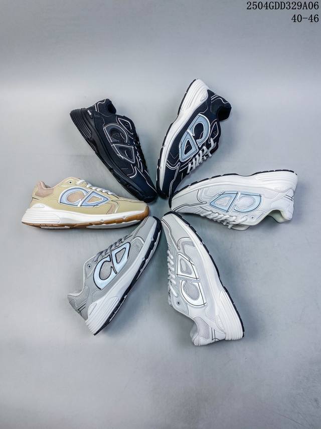 Dior 迪奥最新配色B30系列 老爹运动鞋 全新B30运动鞋 顺应复古市场的趋势的 Dad Shoes风格鞋款鞋舌上的Dior标志 也注明了这双鞋是B30的型号!B30运用了质感细腻的皮革和网眼布面材质拼接成鞋身,鞋身两侧有显眼的字母Cd 表明身份,鞋身多处线条勾勒细节 让鞋子看起来不那么单调、复古味十足