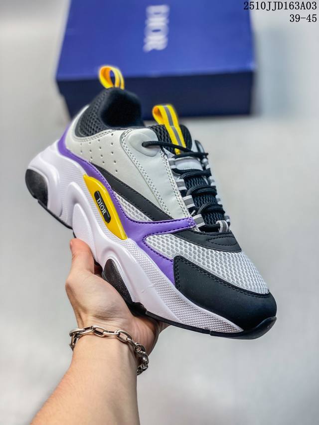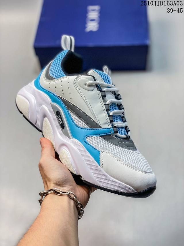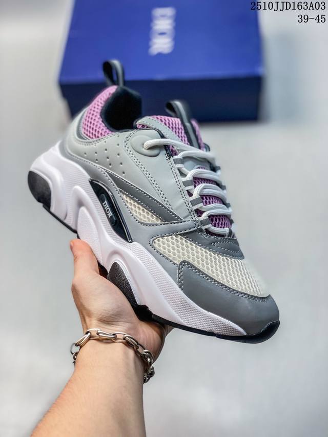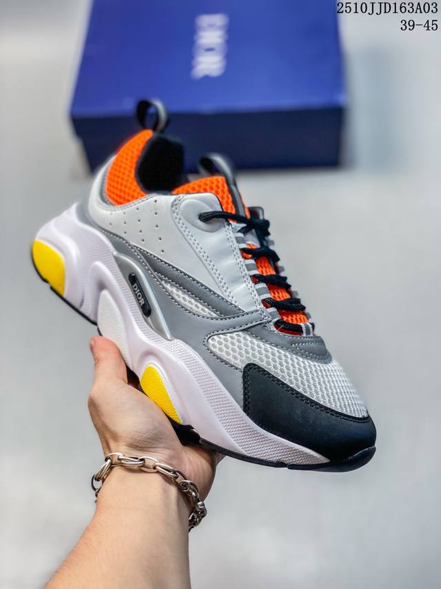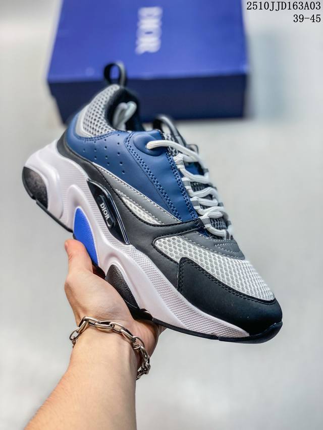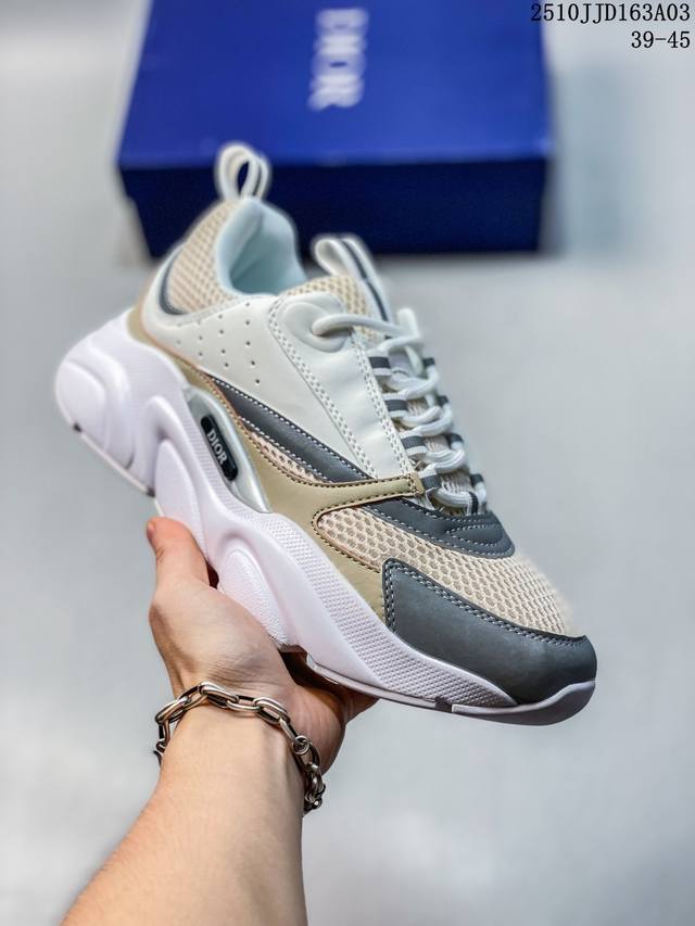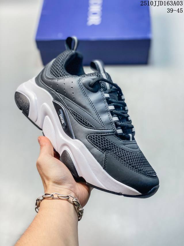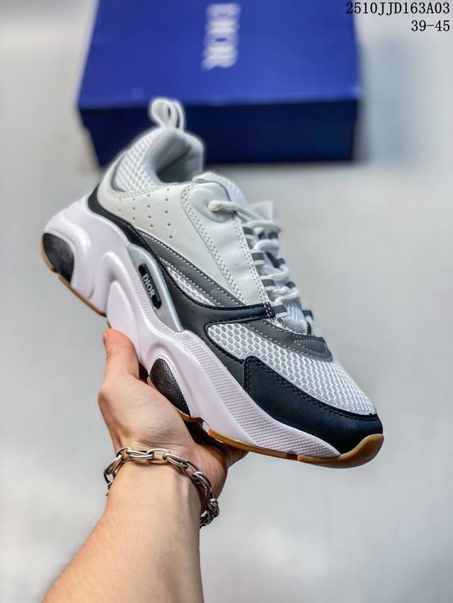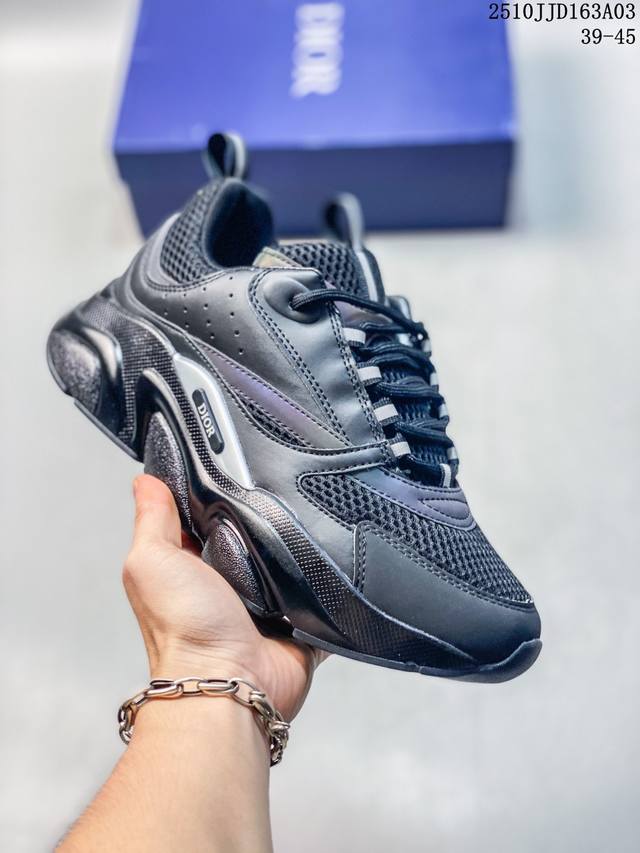 Dior 迪奥 原楦原纸版数据开发,采用光滑牛皮革组合网织布面材质,正确吸汗网布贴合海玻璃Cd压纹鞋垫,独家开发Tpu弹力中底组合Tr光泽耐韧锯齿橡胶大底法国高奢时装品牌-迪奥 桀傲 Dior Homme B22 Trainer Sneaker系列复古厚底老爹风休闲运动慢跑鞋 尺码:如图 编码:10Jjd163A03