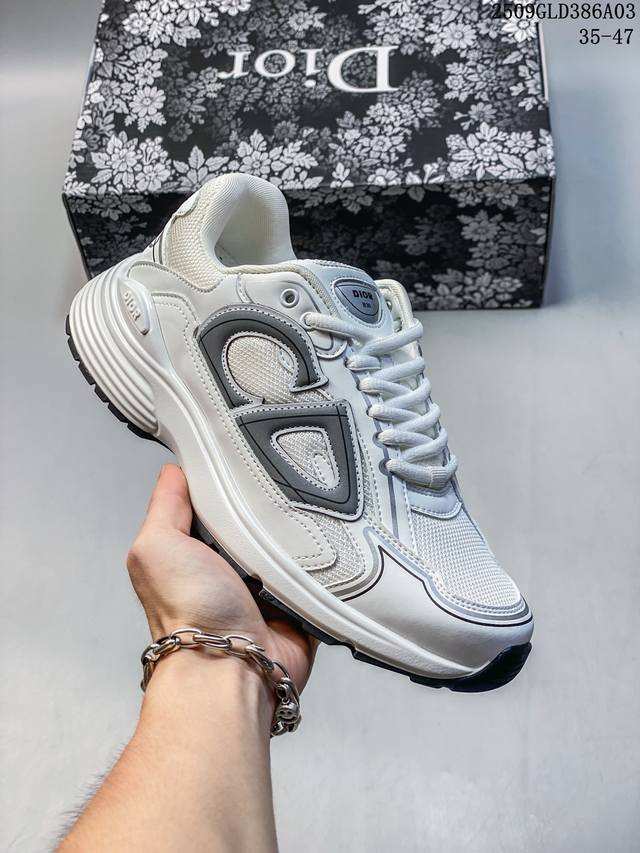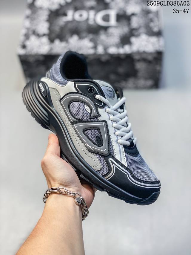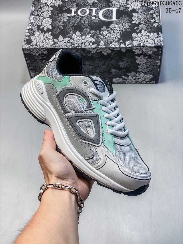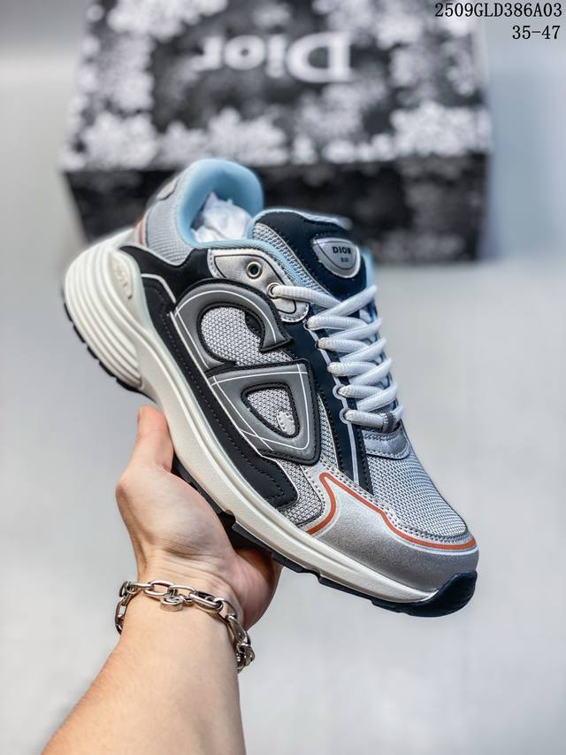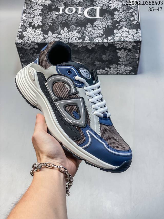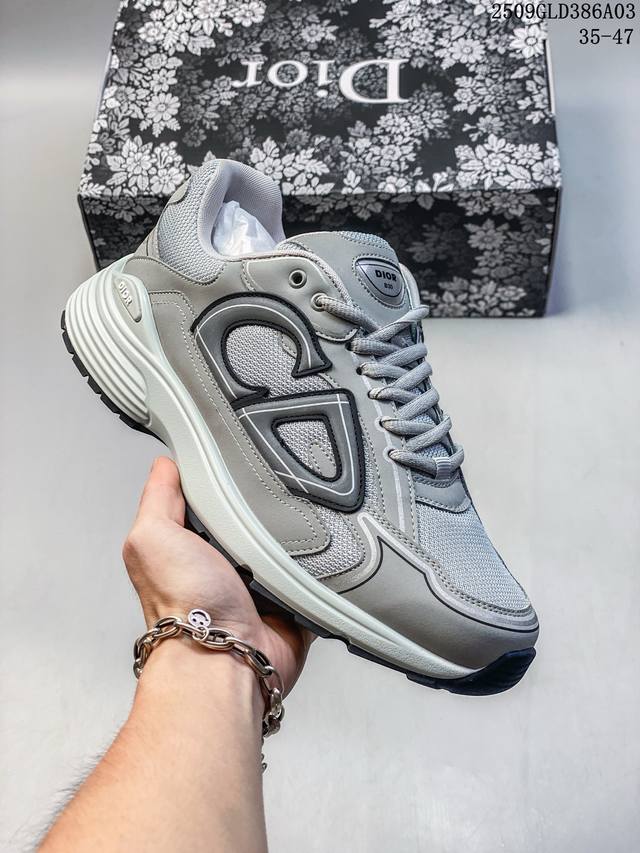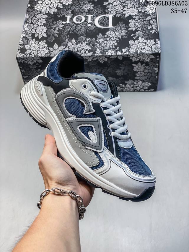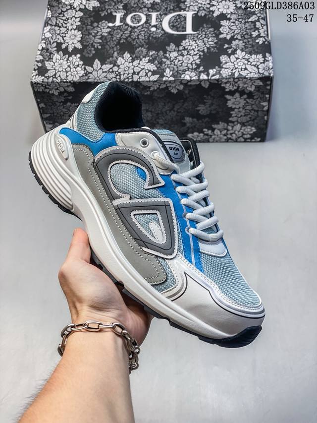 Q司级Dior迪奥B30网眼织物厚底系带休闲低帮运动鞋男女同款老爹鞋 这款 B30 Countdown 低帮运动鞋已成为 Dior 别具一格的经典新品,时尚而富有运动风范。采用煤灰色网眼织物精心制作,搭配黑色、蓝色和迪奥灰科技面料,饰以反光 Cd30 标志提升格调,富有美感。鞋舌和鞋跟处饰以银色调 Dior B30 和 Cd30 标志。轻盈的纹理效果橡胶鞋底饰以众多特色细节,内部弹力饰带打造理想的舒适穿着体验。可与各式休闲单品搭配,打造精致造型。