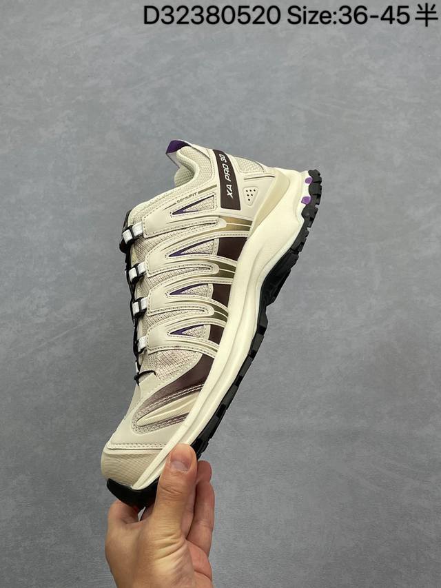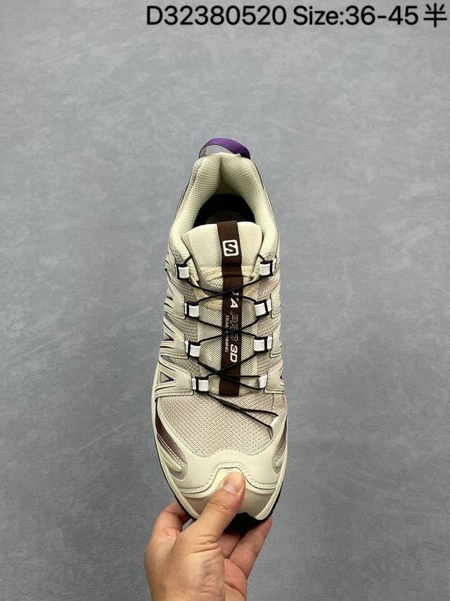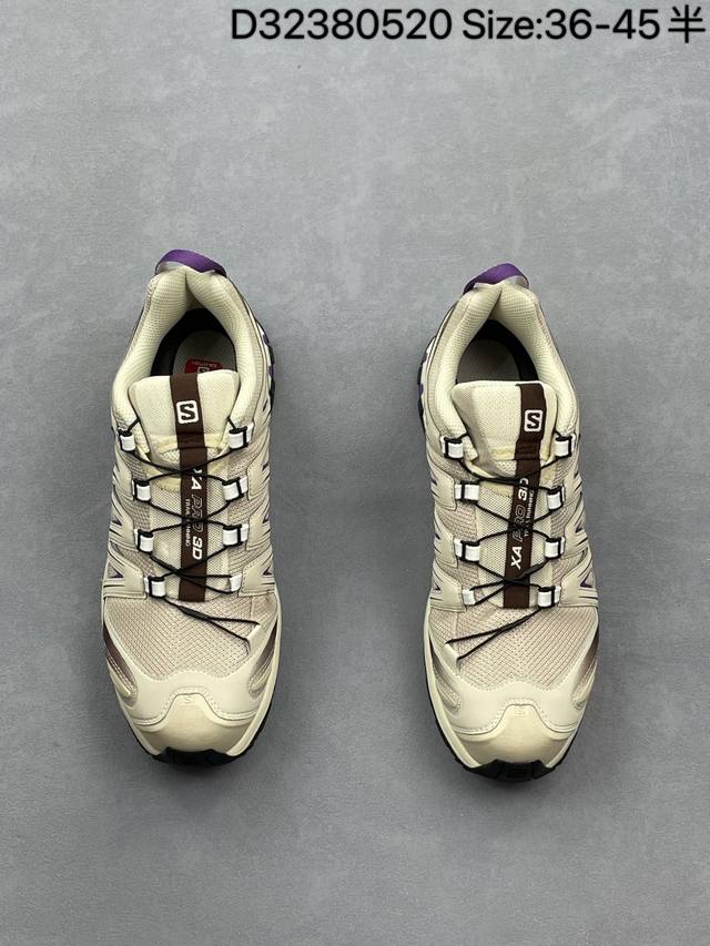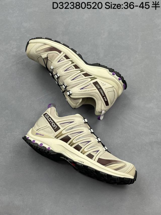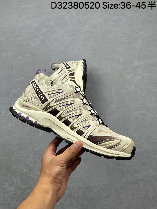 salomon Xa pro 3D 萨洛蒙户外越野跑鞋 416176-29 #鞋面采用Sensifit贴合技术 全方位贴合包裹脚型 鞋跟部鞋底牵引设计 提供强大的抓地性能 更适应野外崎岖不平的道路 其3D Advanced Chassis底盘 材料轻量大化 钉齿设计更具稳定性 防护性 鞋底易磨损区运用Contagrip高耐磨材料 应对城市硬质路面长距离跑考验