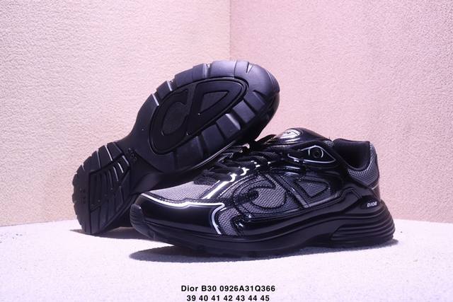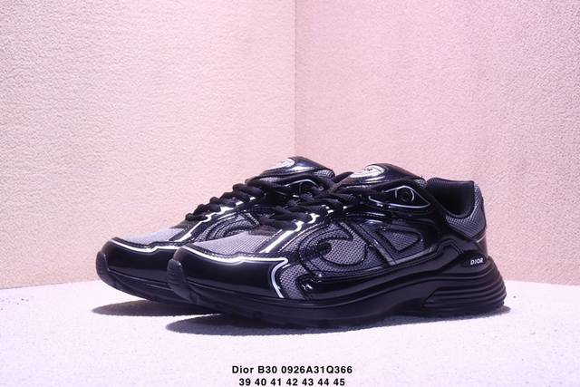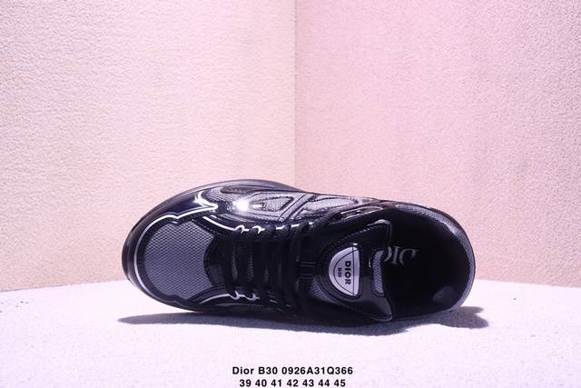 / Dior B30 迪奥网眼织物低帮运动休闲鞋 该款系列采用黑网色眼织物白和色科技料面精心制 作饰以反光“Cd30”图形标志 外格轻盈的刻雕效果橡胶鞋搭底配标志性