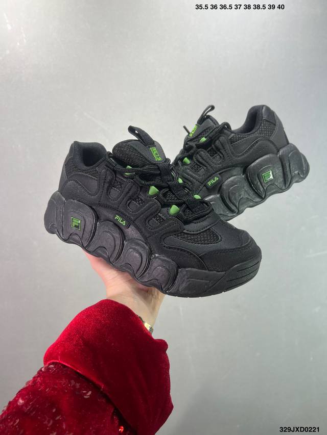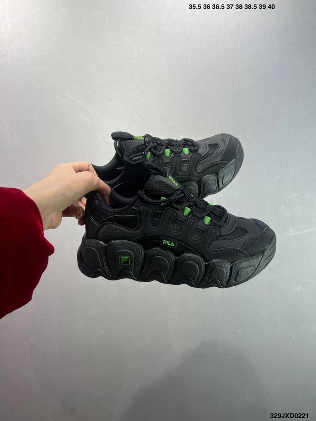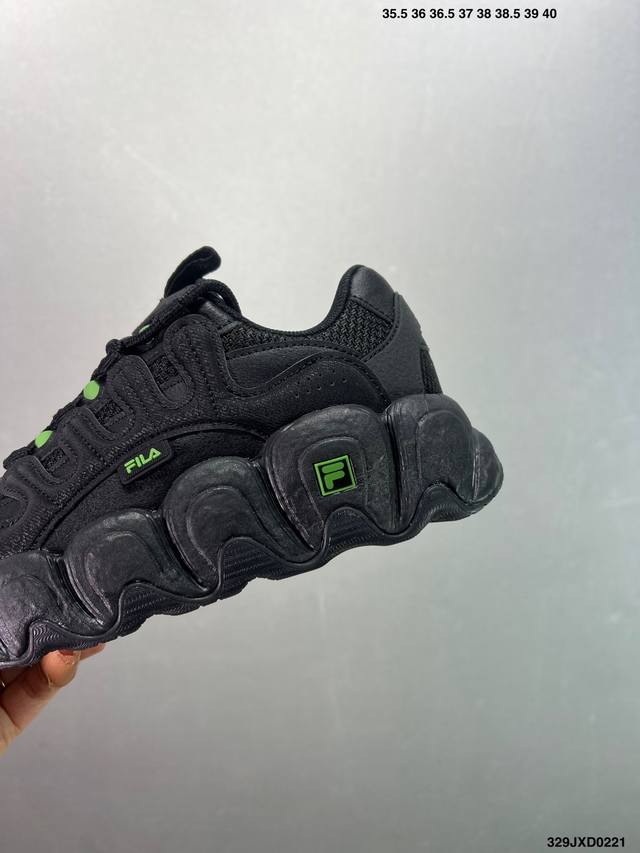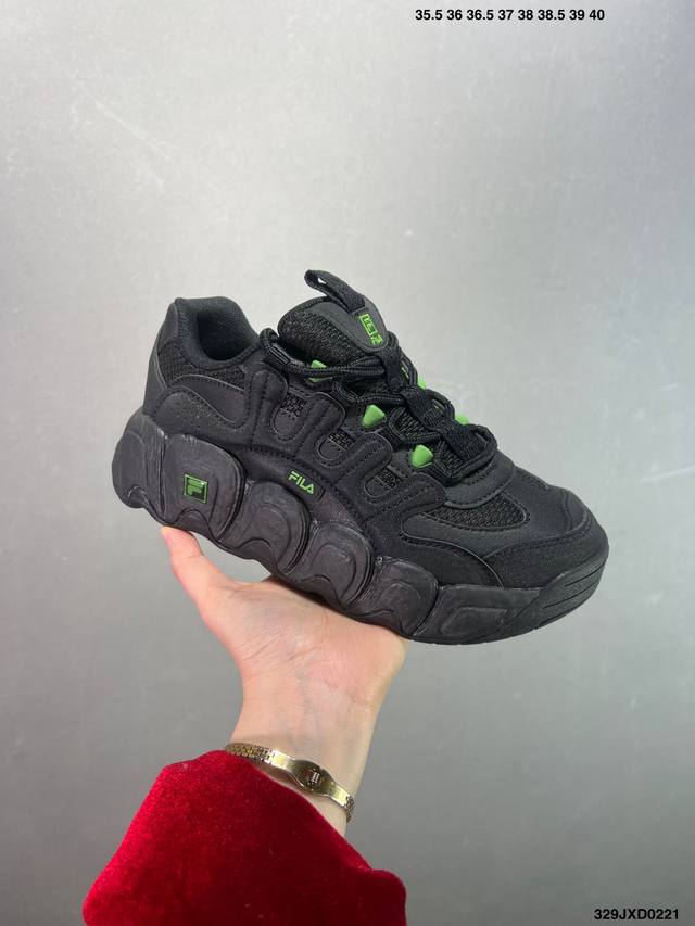 公司级Fila斐乐 鱼刺3.0网布皮革 舒适百搭 厚底低帮舒适 生活休闲老爹鞋 货号:F12W442104 尺码:35 36 36.5 37.5 38 38.5