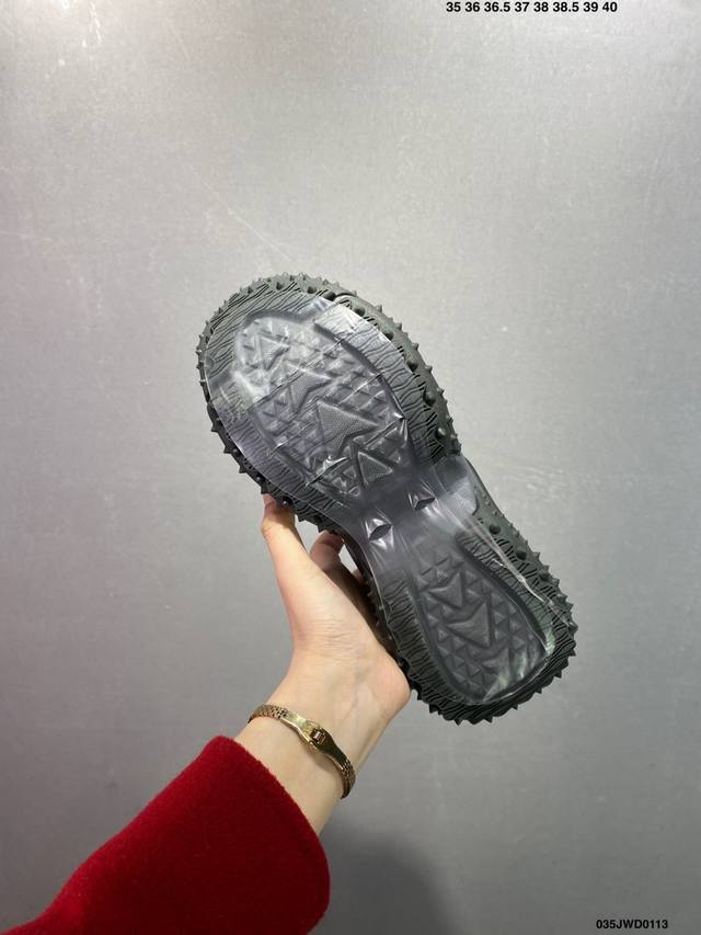 从其复古鞋面提炼元素 结合板鞋鞋底做现代拼接的混搭风格设计 鞋身的Tpu 保留滑板的耐磨性与包裹性 3厘米的厚底 增高且拉长腿部线条比例大底设计灵感来源于专业的滑板动作-磨双桥动作成型 Eva 橡胶材质 脚感舒适