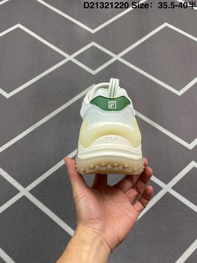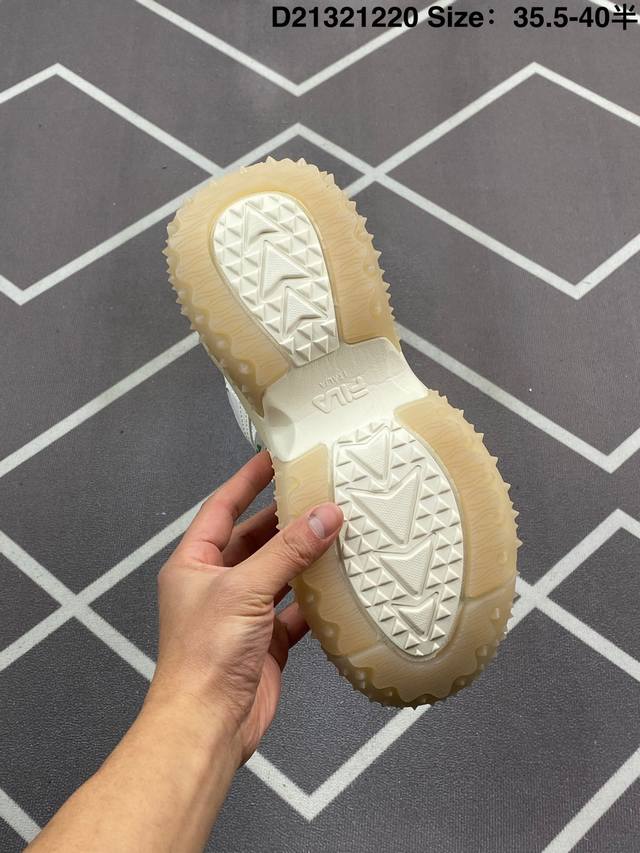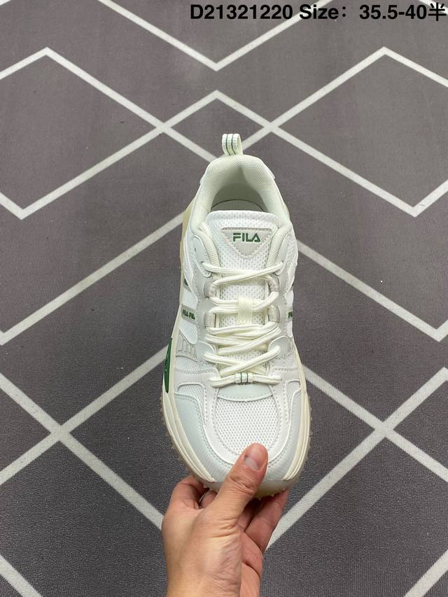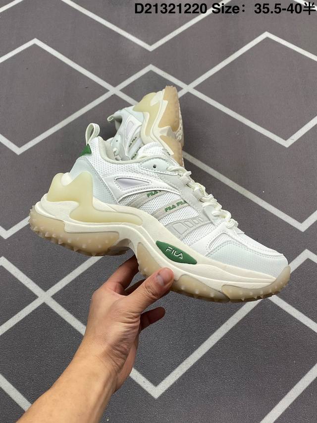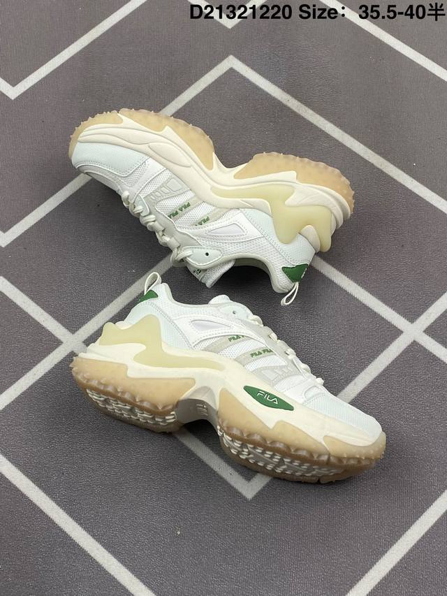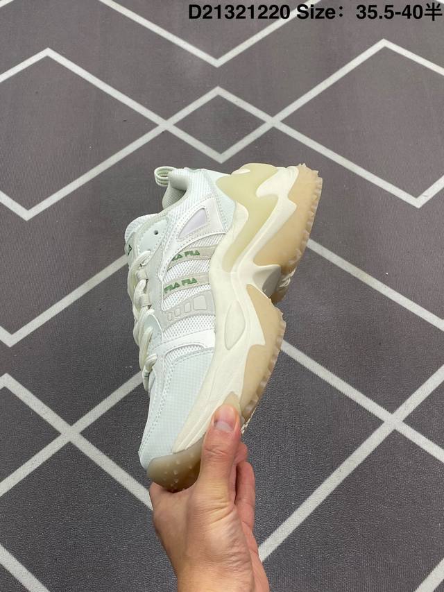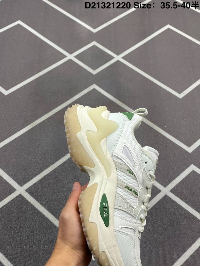/ 公司级Fila斐乐 鱼刺3.0网布皮革 舒适百搭 厚底低帮舒适 生活休闲老爹鞋 货号:F12W431107Fsf 尺码:35.5 36 36.5 37.5 38