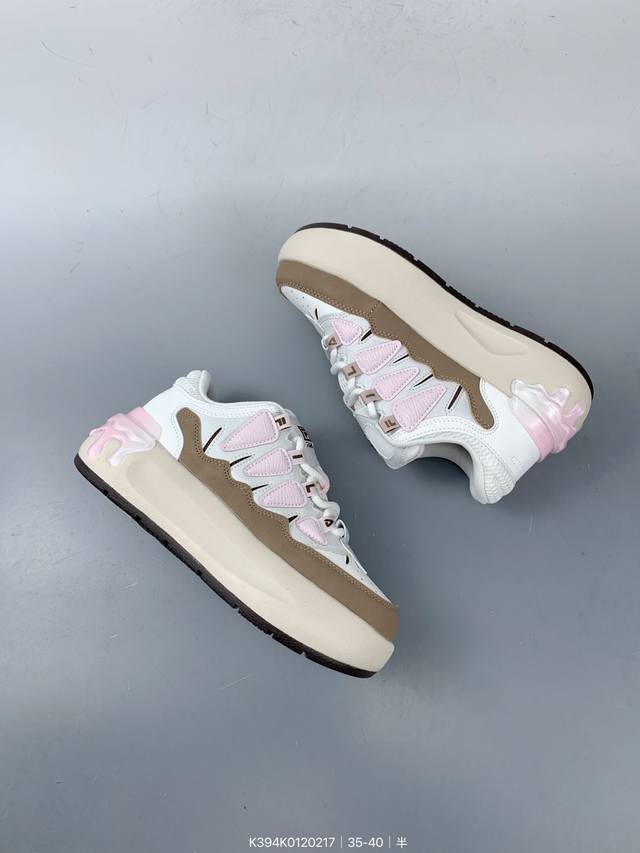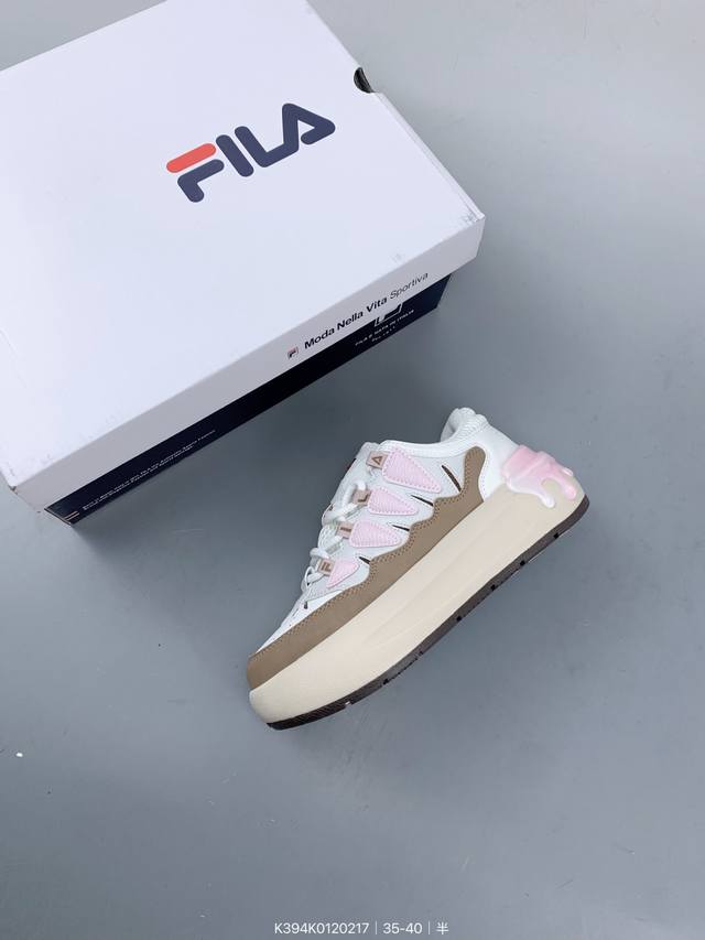 升级N版#女鞋真标半码制#升级原楦原纸版数据开发版型#采用环保纤维革组合网织布鞋面材质#独立外发泡Eva科技中底+耐磨橡胶外底,4.5Cm厘米外增高效果意式运动美学斐乐Fila Fusion Carrot Low 萝卜系列摩登老爹风增高厚底复古中性休闲运动慢跑鞋“