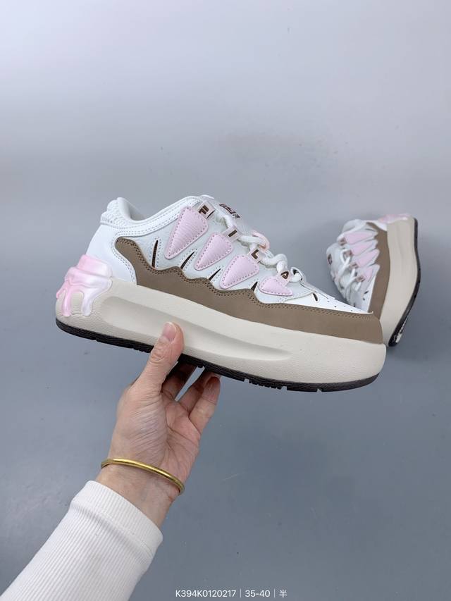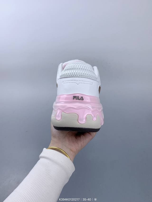 公司级Fila Fusion斐乐潮牌 Bianco 织物合成革 硬糖 拼接减震防滑耐磨透气 低帮 老爹鞋 货号:T12W441005Fft 尺码:35.5 36