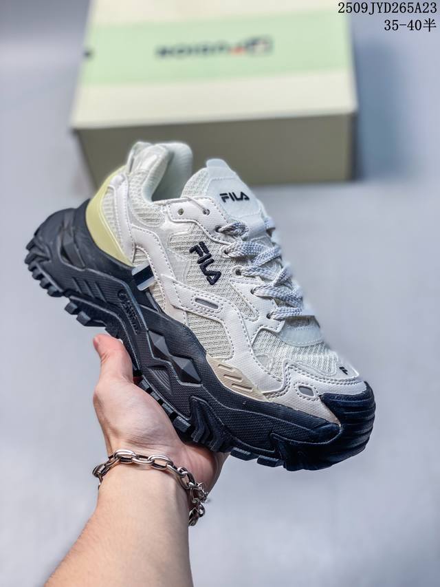 Fila斐乐 鱼刺3.0网布皮革 舒适百搭 厚底低帮舒适 生活休闲老爹鞋 货号:F12W411105Fsw 尺码: 35 36 36.5 37.5 38 38.