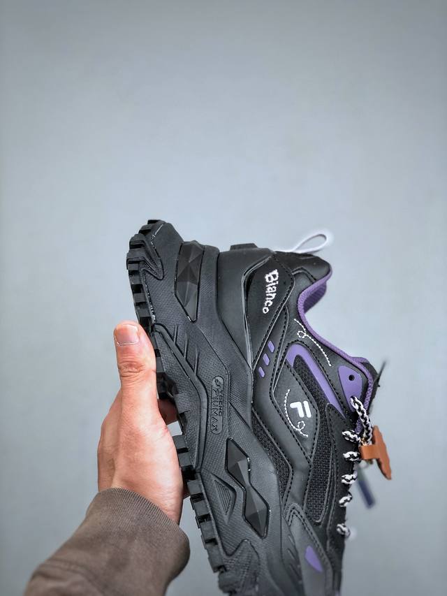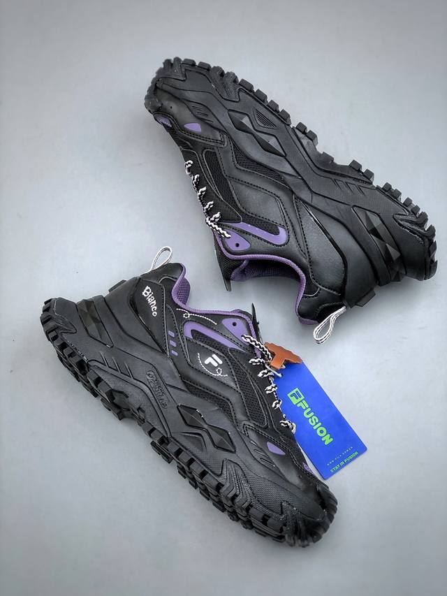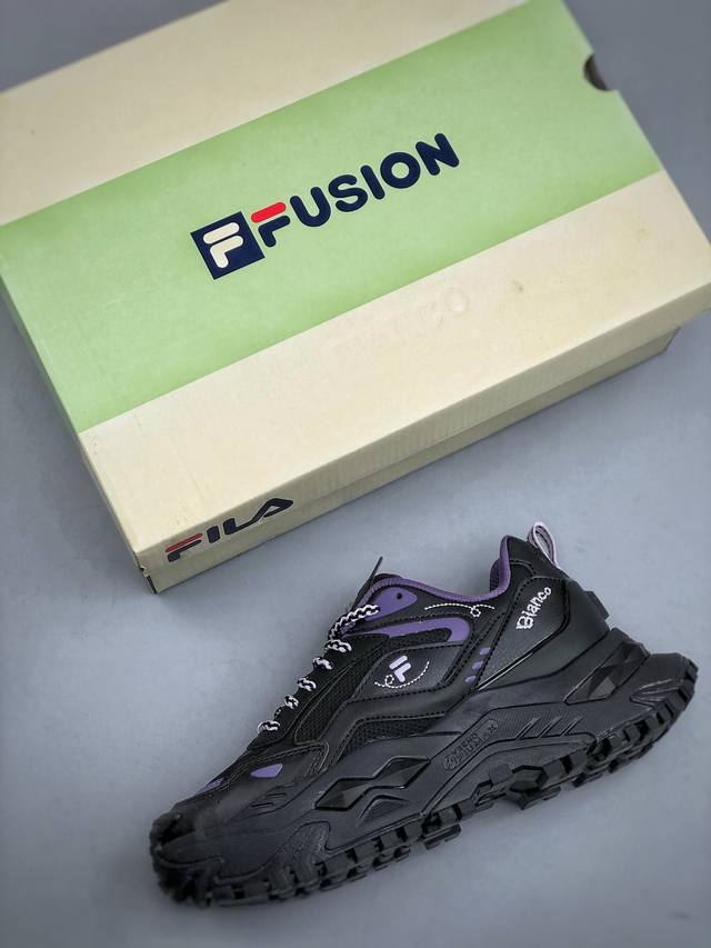 Fila Fusion斐乐潮牌bianco 海盗熊舒适百搭防滑增高低帮生活休闲鞋女款黑粉紫 12Jwd317A18
