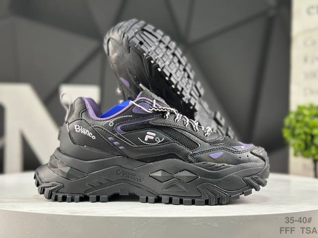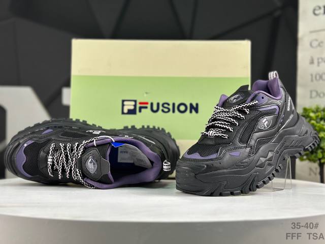 / 公司级 Fila Fusion斐乐潮牌 Bianco 织物合成革 硬糖 拼接减震防滑耐磨透气 低帮 老爹鞋 货号:T12W541005Fgc 尺码:35 35.