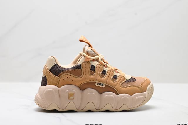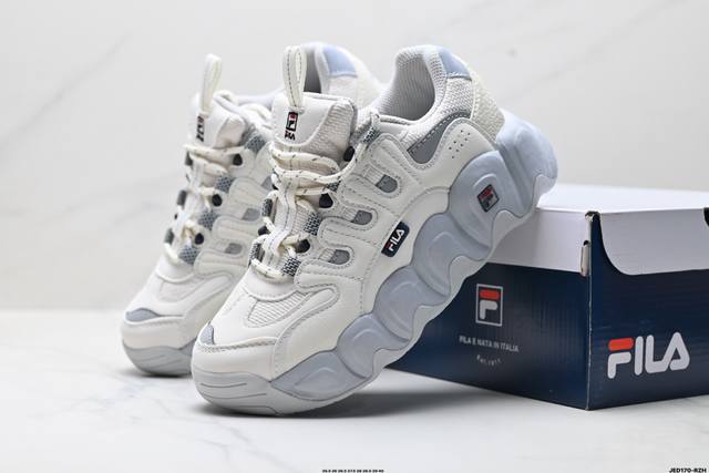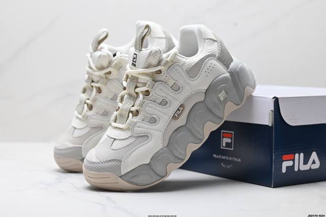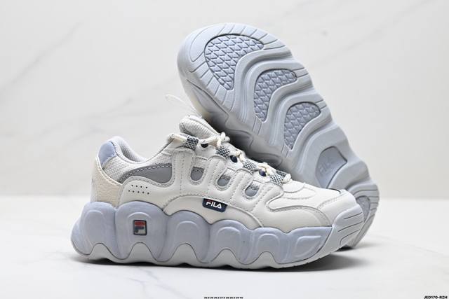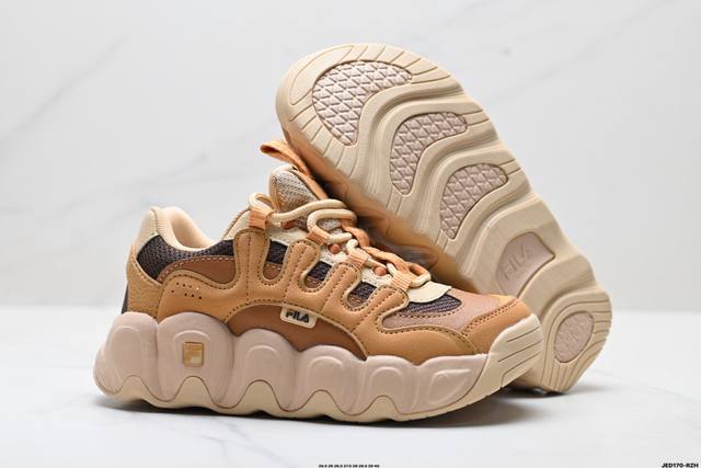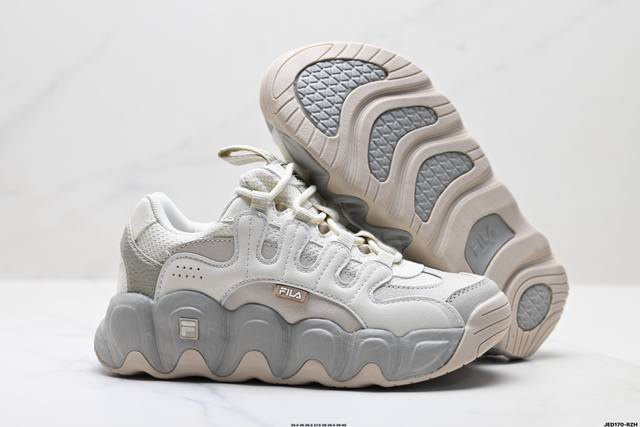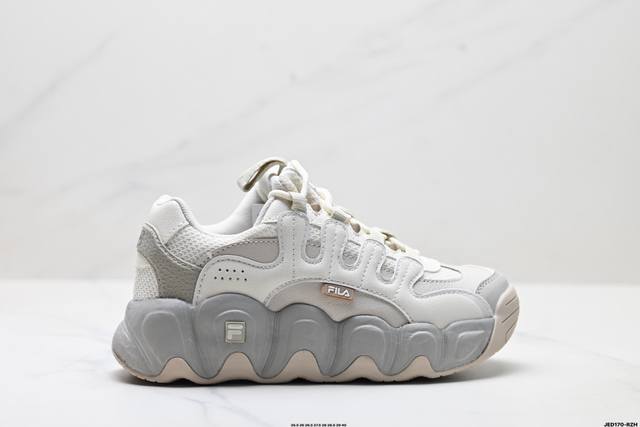 采用均衡性能的发泡科技材料 提供均衡重量 回弹 缓震的舒适脚感 侧面融入Fila Logo变体设计 电绣工艺体现精致优雅细节 彰显品牌感又别具个性让日常穿搭更加摩登活力 延续历代具有辨识度的鞋底 鞋面结构线条创新升级