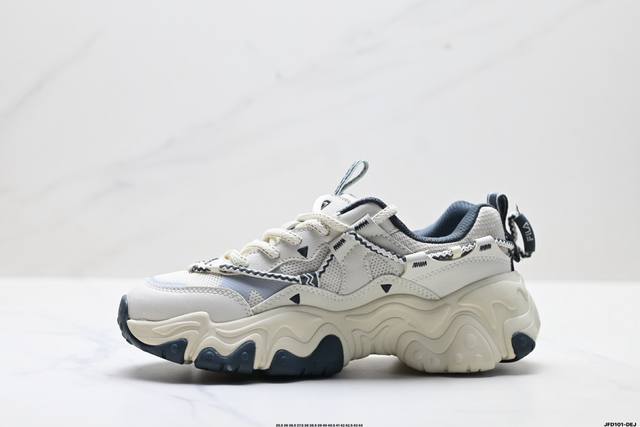 公司级Fila斐乐 鱼刺3.0网布皮革 舒适百搭 厚底低帮舒适 生活休闲老爹鞋 货号:F12W44 4Fnc 尺码:35.5 36 36.5 37.5 38 3