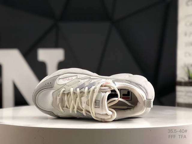 公司级Fila斐乐 鱼刺3.0网布皮革 舒适百搭 厚底低帮舒适 生活休闲老爹鞋 货号:F12W44 4Fnc 尺码:35.5 36 36.5 37.5 38 3