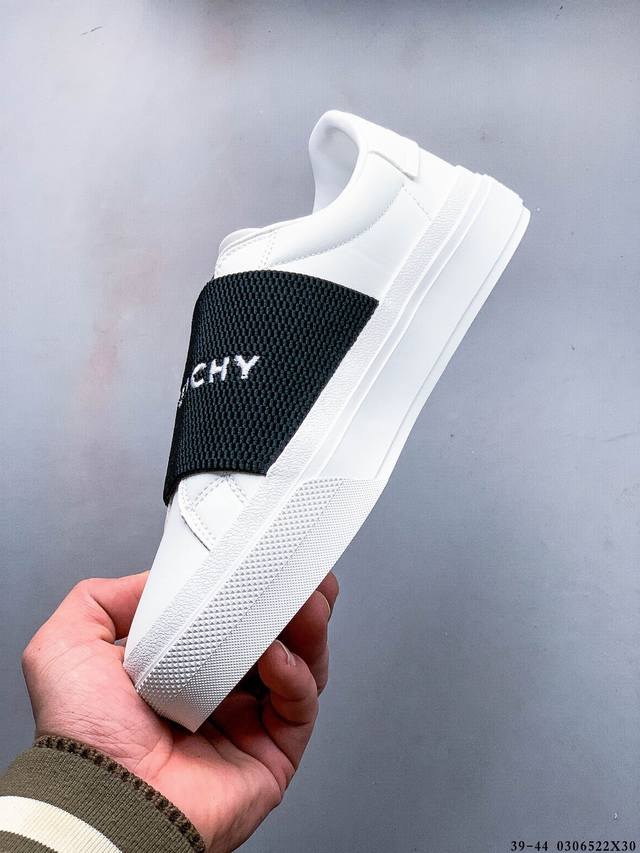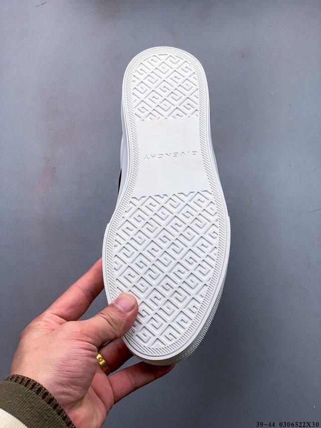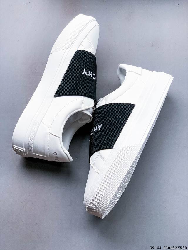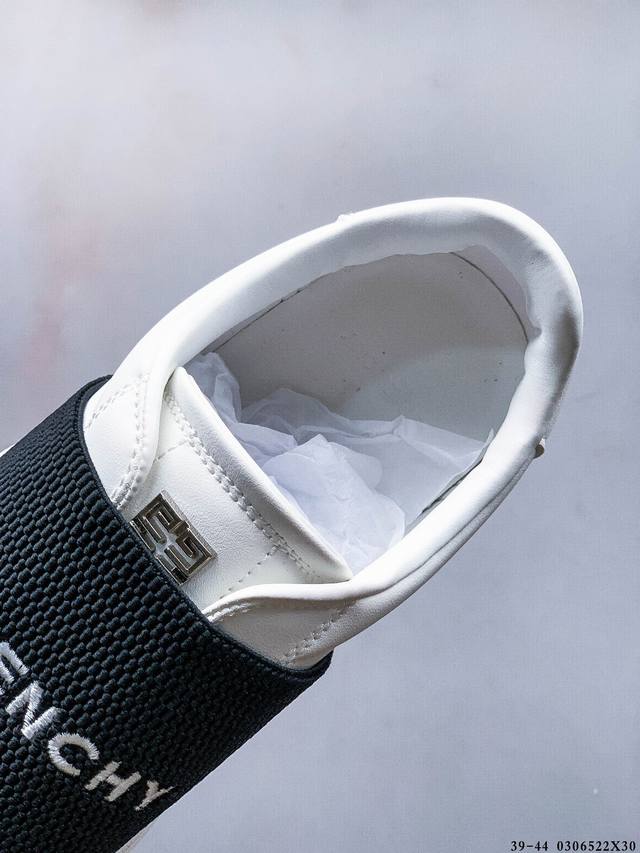 男鞋广东原产,丝绸贴膜牛皮+超软猪内里,空补胶技术及鞋底采用固特异内外锁死工艺,最大限度弯折永不开胶,原版克重耐磨橡胶大底全新印花串标Logo松紧带设计,高奢品牌·Gvc纪梵希Givenchy 4G Webbing Leather Sneaker时装百搭休闲皮革一脚蹬小白板鞋