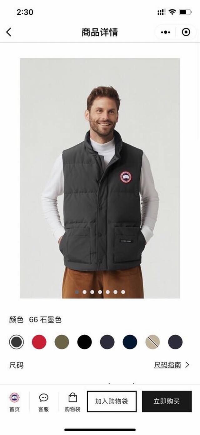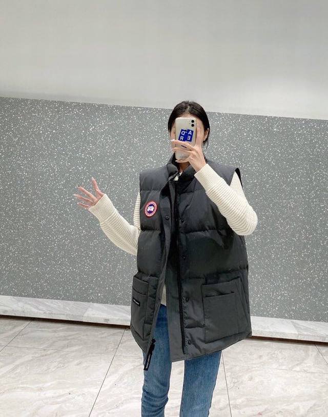 / 渠道优势,支持代发! 外贸保真版:大鹅20款马甲 灰色 Canada Goose Log徽标男款羽绒马甲 Size:Xs S M L Xl Xxl