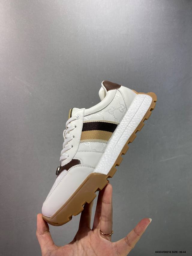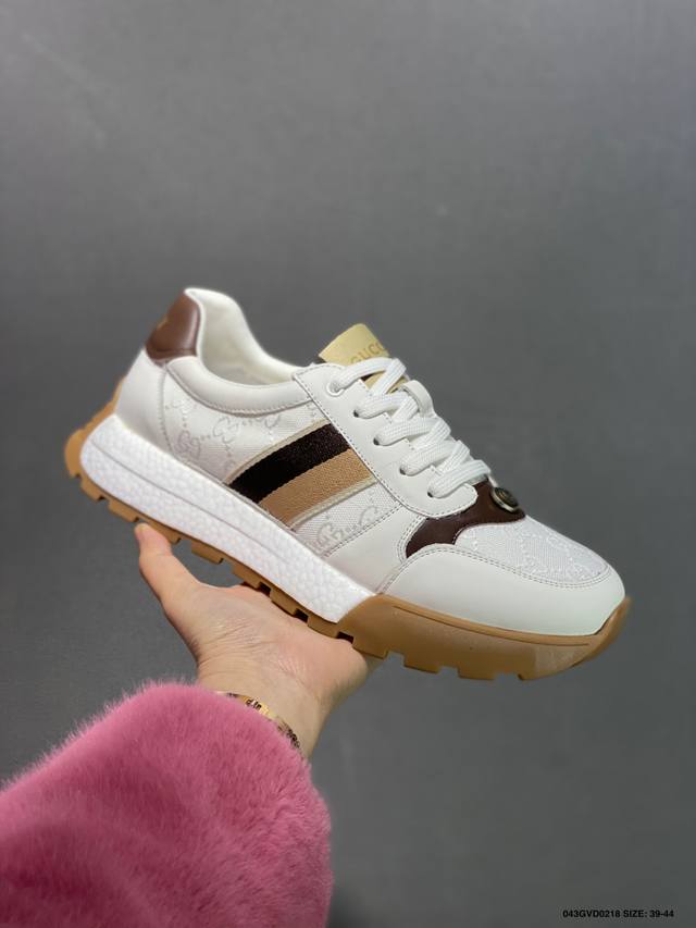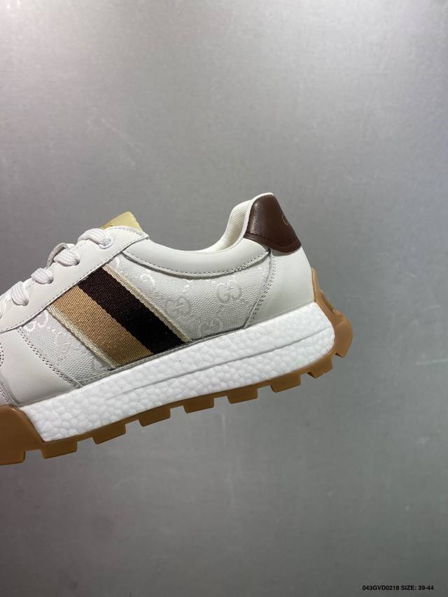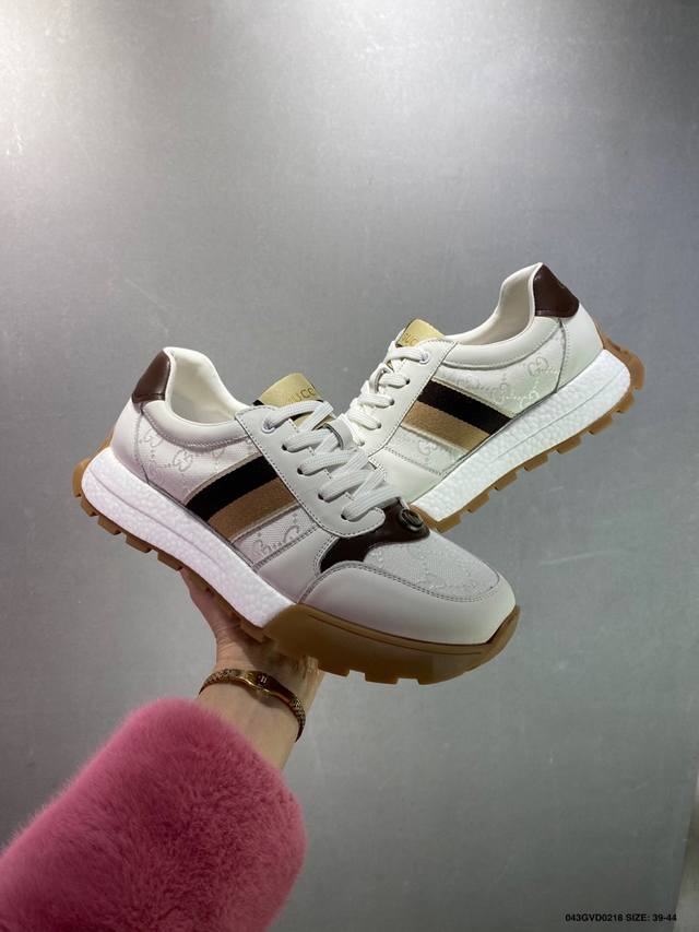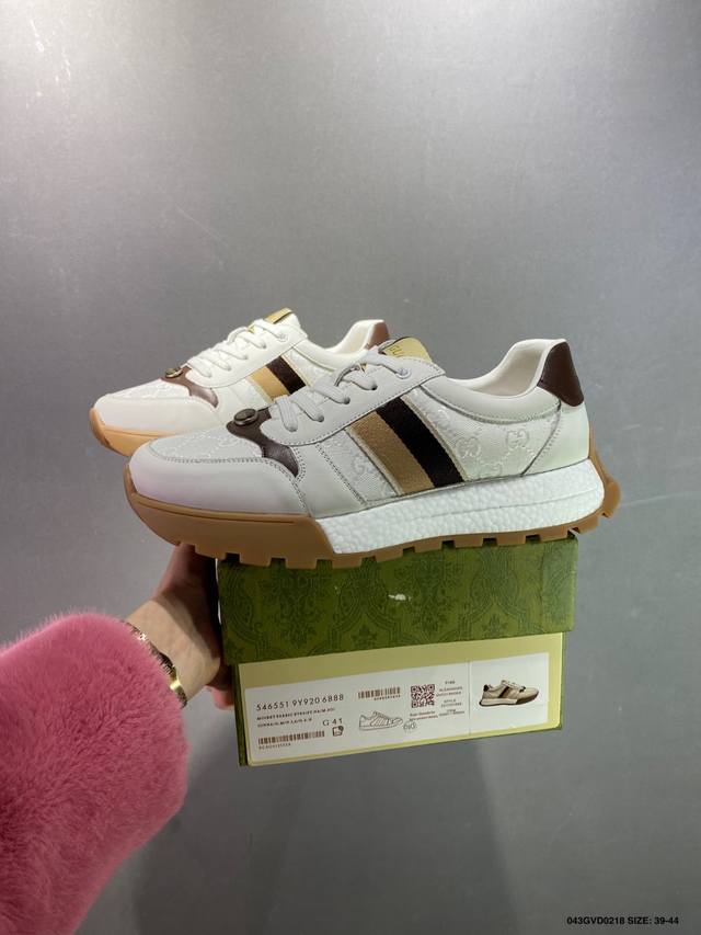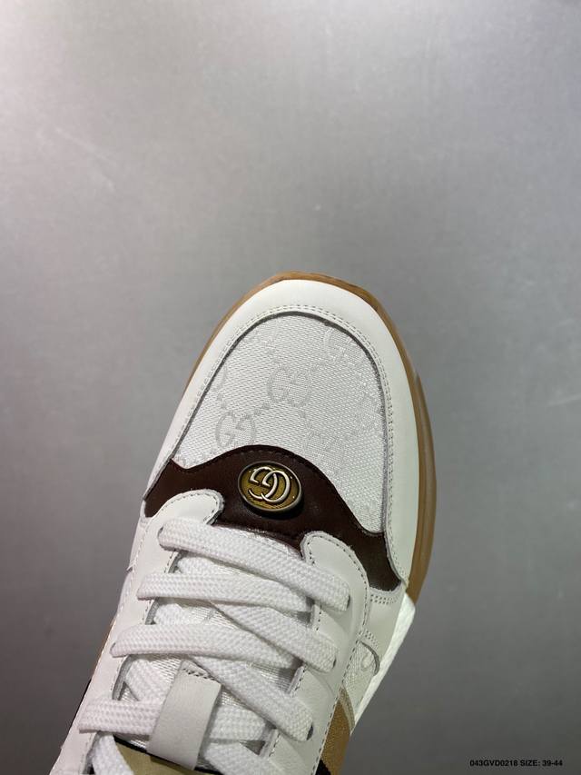 公司级 Gucci Chunky B Screener Gg 古驰春季新款休闲运动鞋系列 #广东大厂出品 原版盒子 官方一致原 原标原盒 官方全套配件 原装雪梨形超软沙绒纸团 手工上线 不开胶 该品牌鞋款在制作中使用的是环保植物胶水 采用厚底结构 巧妙运用外观设计、配色和材质三重元素 展现出复古风范 别致的橡胶发泡鞋底 搭配米色和乌木色经典Gg帆布鞋身及同色调皮革滚边 突显时尚大气的品味 尺码:39 40 41 42 43 44 皮鞋码