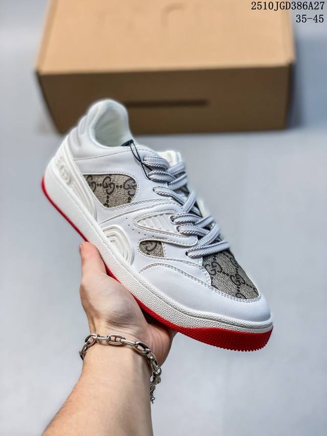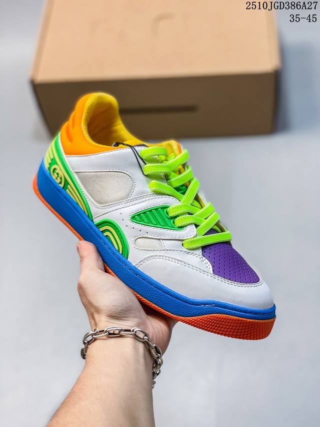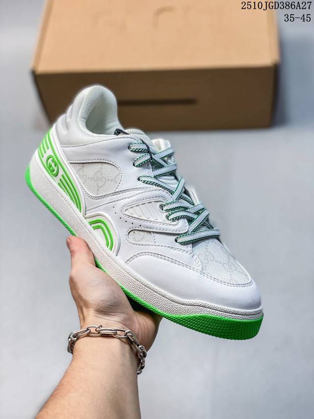 双十一福利特价 广东原装高端 Gucci Basket 篮球鞋低帮 情侣款 Gucci Basket球鞋系列 灵感源自于90年代篮球鞋 整个款式非常重工 鞋面融入了标志性的Gucci元素 混搭色太好看啦 彰显自我个性 有轻微的做旧风格 Gucci的粉丝别错过 这款的材料全新采用可持续环保材料Demetra制成,具备柔软可延展的优良特性,这环保材料主要源自不含动物成份 可持续 可再生 鞋底为开模橡胶底 尺码 35 36 37 38 39 40 41 42 43 44 45 10Jgd286A27
