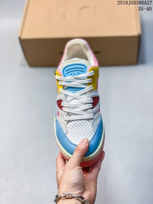 双十一福利特价 广东原装高端 Gucci Basket 篮球鞋低帮 情侣款 Gucci Basket球鞋系列 灵感源自于90年代篮球鞋 整个款式非常重工 鞋面融入了标志性的Gucci元素 混搭色太好看啦 彰显自我个性 有轻微的做旧风格 Gucci的粉丝别错过 这款的材料全新采用可持续环保材料Demetra制成,具备柔软可延展的优良特性,这环保材料主要源自不含动物成份 可持续 可再生 鞋底为开模橡胶底 尺码 35 36 37 38 39 40 41 42 43 44 45 10Jgd286A27