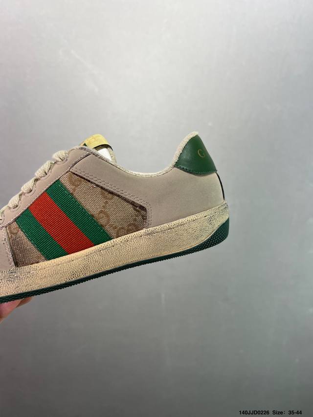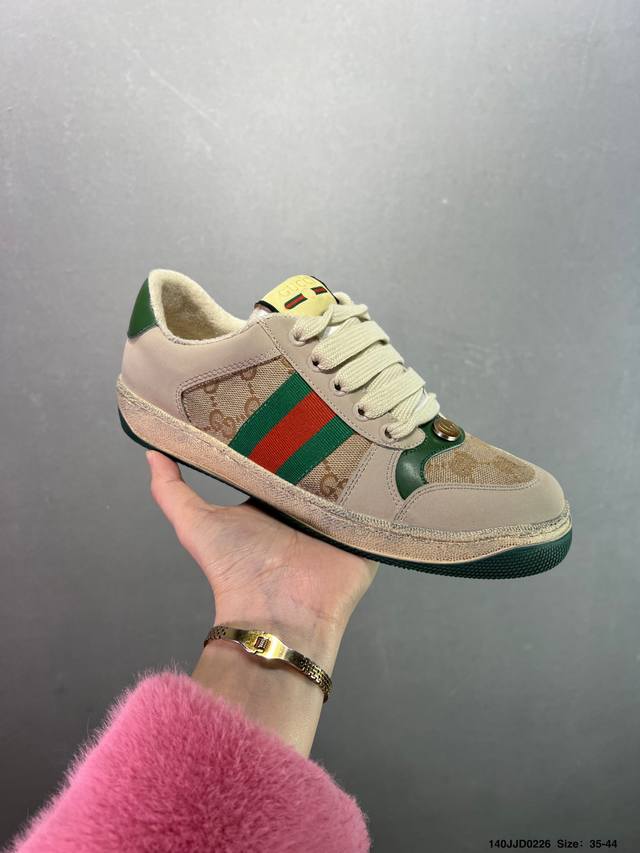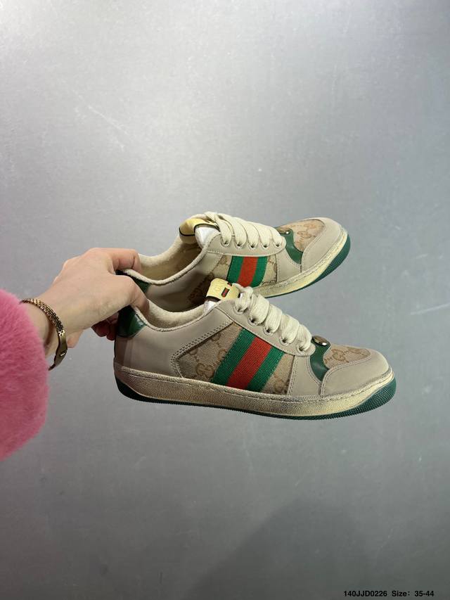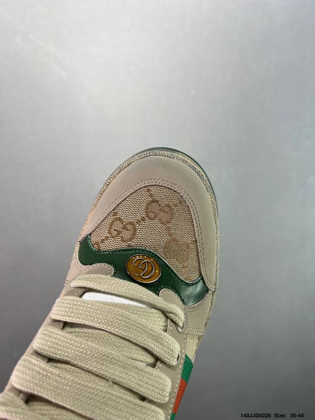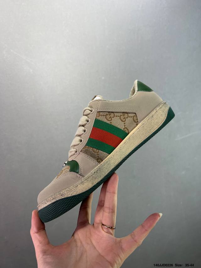 古驰 Gucci Distressed Screener Sneaker 古驰小脏鞋系列 官方同步 经典原型复古百搭做旧小脏板鞋复古学院风 怀旧版