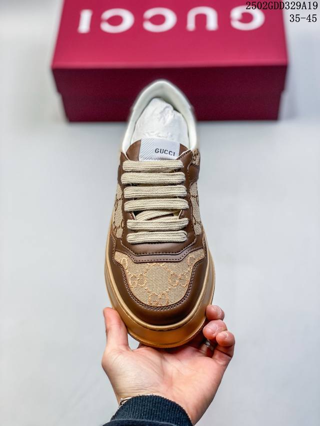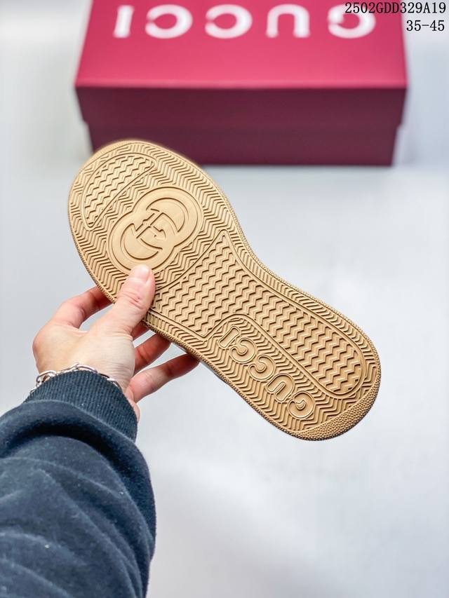 原版盒子 官方一致原版 原标原盒 官方全套配件 原装雪梨形超软沙绒纸团 手工上线 不开胶 该品牌鞋款在制作中使用的是环保植物胶水 采用版凝胶技术 空胶工艺 存在一些缝隙属于正常现象 不用担心会影响到您的正常使用效果 采用厚底结构 巧妙运用外观设计、配色和材质三重元素 展现出复古风范 别致的橡胶鞋底 搭配米色和乌木色经典Gg帆布鞋身及同色调皮革滚边 突显时尚大气的品味