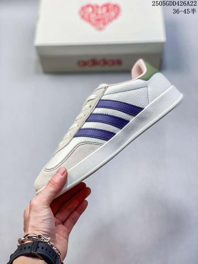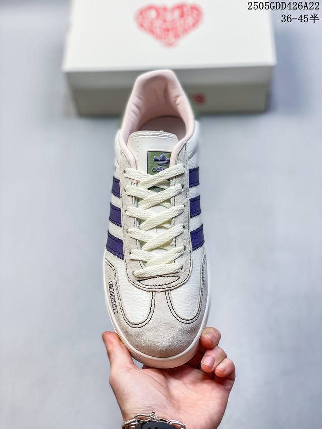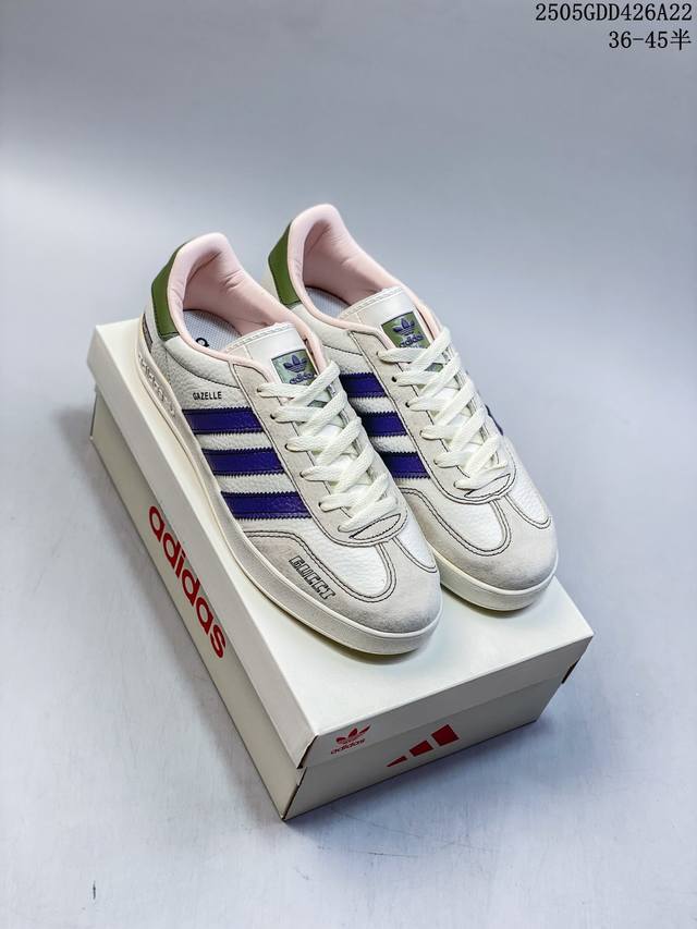 海外爆款限量发 高端定制 Ad Gazelle Indoor Trainers 古驰联名---奶白灰紫 原厂定制长毛翻毛皮组合环保纤维革鞋面材质