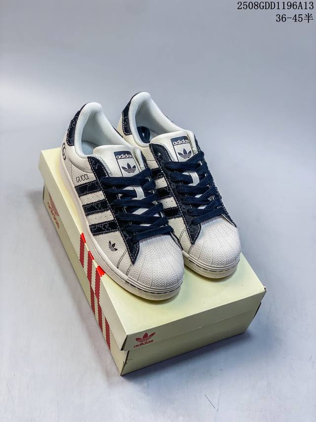 纯原 Clot X Ad Originals三叶草#贝壳头古驰联名限定 贴合柔软皮料黑白配色 ,这双鞋的整体设计思路和风格可以说很Clot。鞋款整体选用了易穿搭的白色作为主色调,而加厚的锯齿形外底以及标志性的贝壳头无疑把鞋款的独特属性进一步展现出来。